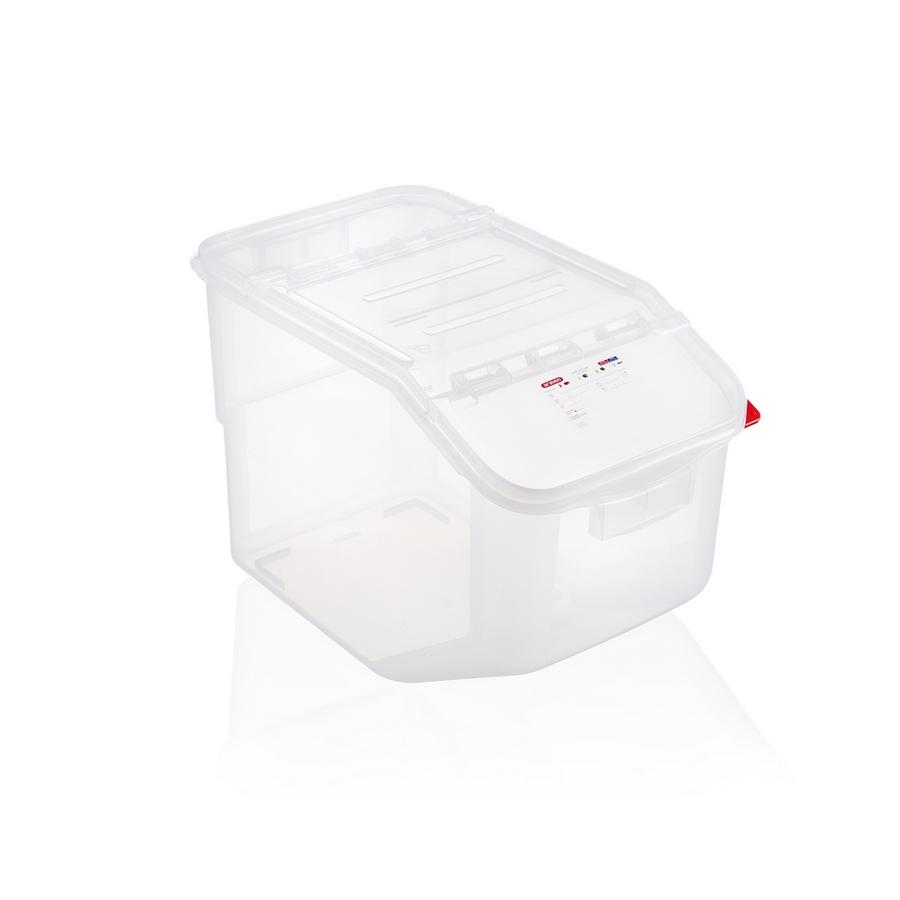 Βρείτε όλα τα προϊόντα απο Araven Δοχεία στεραιών τροφίμων ColorClip® 50 l / 13 Gal. Είναι σχεδιασμένα για τέλεια αποθήκευση, βέλτιστη συντήρηση των τροφίμων με μέγιστη υγιεινή και τον αυστηρότερο έλεγχο των πρώτων υλών. Τα δοχεία στεραιών τροφίμων είναι ιδανικά για την αποθήκευση τροφίμων με πολύ χαμηλά επίπεδα υγρασίας (ξηρά προϊόντα, ξηρούς καρπούς, ζυμαρικά, ρύζι…) καθώς μπορούν να κλειστούν ώστε το περιεχόμενο να προστατεύεται χωρίς να χρειάζεται να είναι αεροστεγές, αποτρέποντας την υγρασία να μπει και να χαλάσει το περιεχόμενο. Το μόνο που έχετε να κάνετε είναι να βρείτε ένα κατάλληλο μέρος για να αποθηκεύσετε το δοχείο, το οποίο θα πρέπει να είναι στεγνό και καλά αεριζόμενο, μακριά από πηγές θερμότητας και υγρασίας, απομονωμένο από πολύ υγρά περιβάλλοντα. Βέλτιστος έλεγχος αποθέματος: Τα δοχεία έχουν σχεδιαστεί με το σύστημα FIFO (first in-first out) με ένα καπάκι για πλήρωση και ένα άλλο άλλο για αφαίρεση . Σύσταση HACCP.