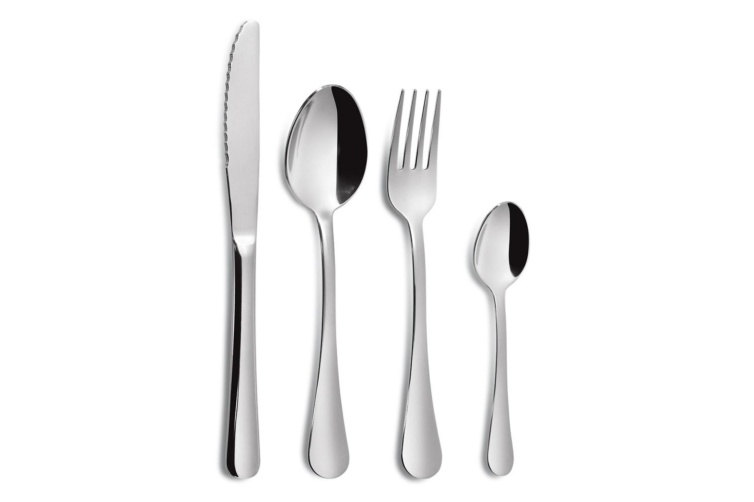 Βρείτε όλα τα προϊόντα απο Comas Το σετ αποτελείται από 6 πιρούνια φαγητού, 6 κουτάλια φαγητού, 6 μαχαίρια φαγητού, 6 κουταλάκια γλυκού. Οξύ και αλάτι μπορούν να αυξήσουν τις πιθανότητες διάβρωσης. Ξεπλύνετε τα μαχαιροπίρουνα πριν τα τοποθετήσετε στο πλυντήριο πιάτων για να βοηθήσετε στην πρόληψη σχηματισμού σκουριάς. Πάντα να διαχωρίζετε τα μαχαιροπίρουνα διαφορετικών ειδών πριν το πλύσιμο. Αφαιρέστε τα μαχαιροπίρουνα από το πλυντήριο αμέσως μετά το πλύσιμο και βεβαιωθείτε ότι τα στεγνώνετε καλά για να αποφύγετε σημάδια σκουριάς.