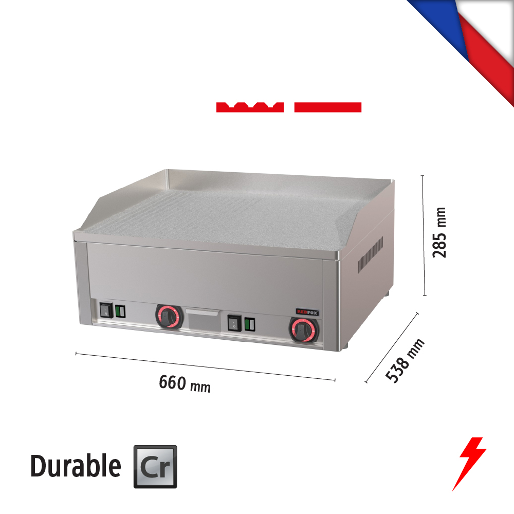 Πλατώ ηλεκτρικό χρωμίου διπλό 1/2 λείο 1/2 ραβδωτό, του εργοστασίου RedFox