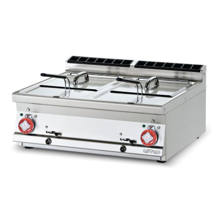 Φριτέζα ηλεκτρική διπλή, χωρητικότητας 10+10 lt, του εργοστασίου Lotus Ιταλίας. Κατασκευασμένο με χρήση ανοξείδωτου χάλυβα ποιότητας (CrNi 18/10 AISI 304) , με διακόπτες αδιάβροχης ποιότητας (IPX5).