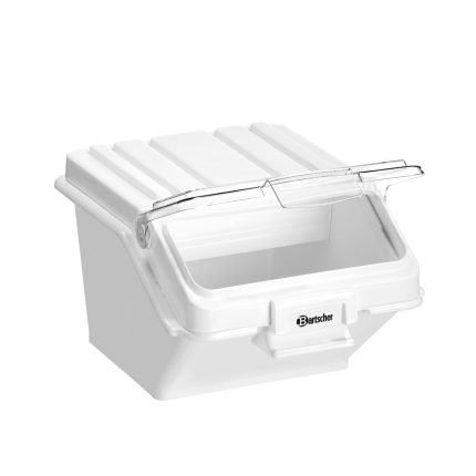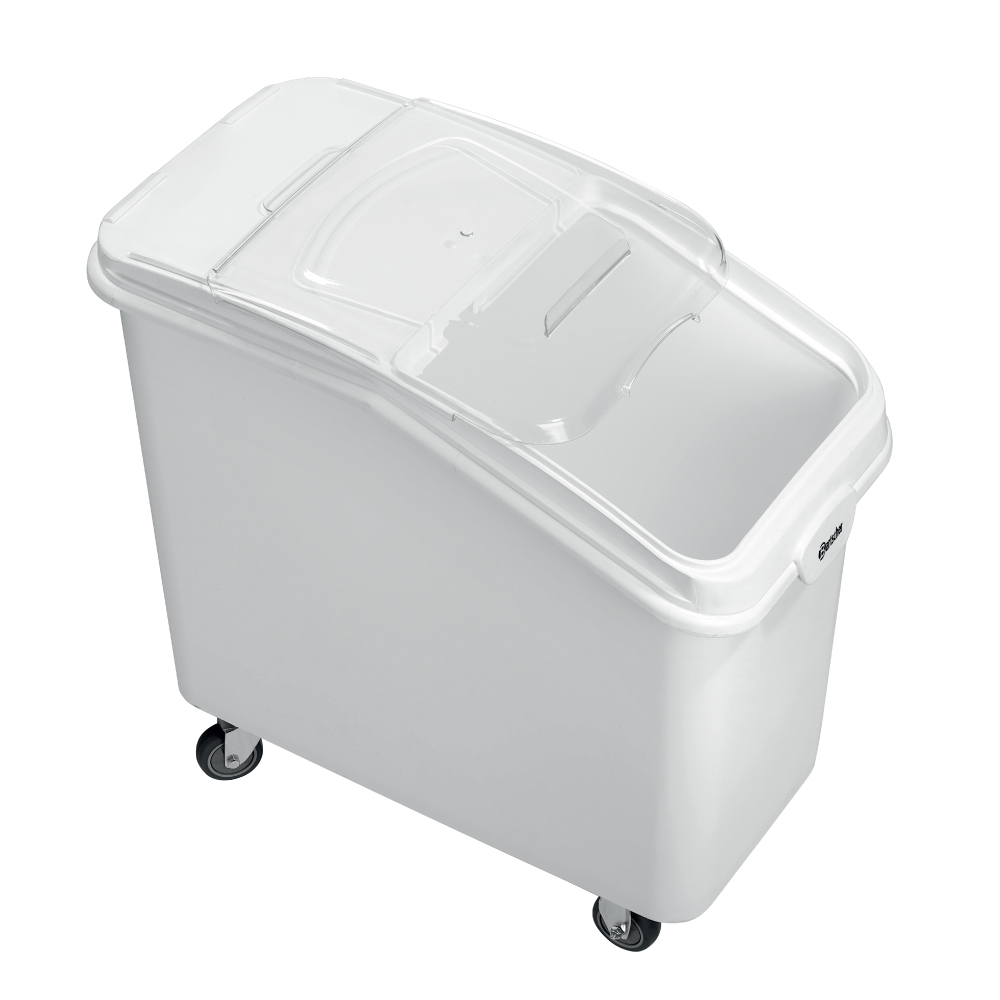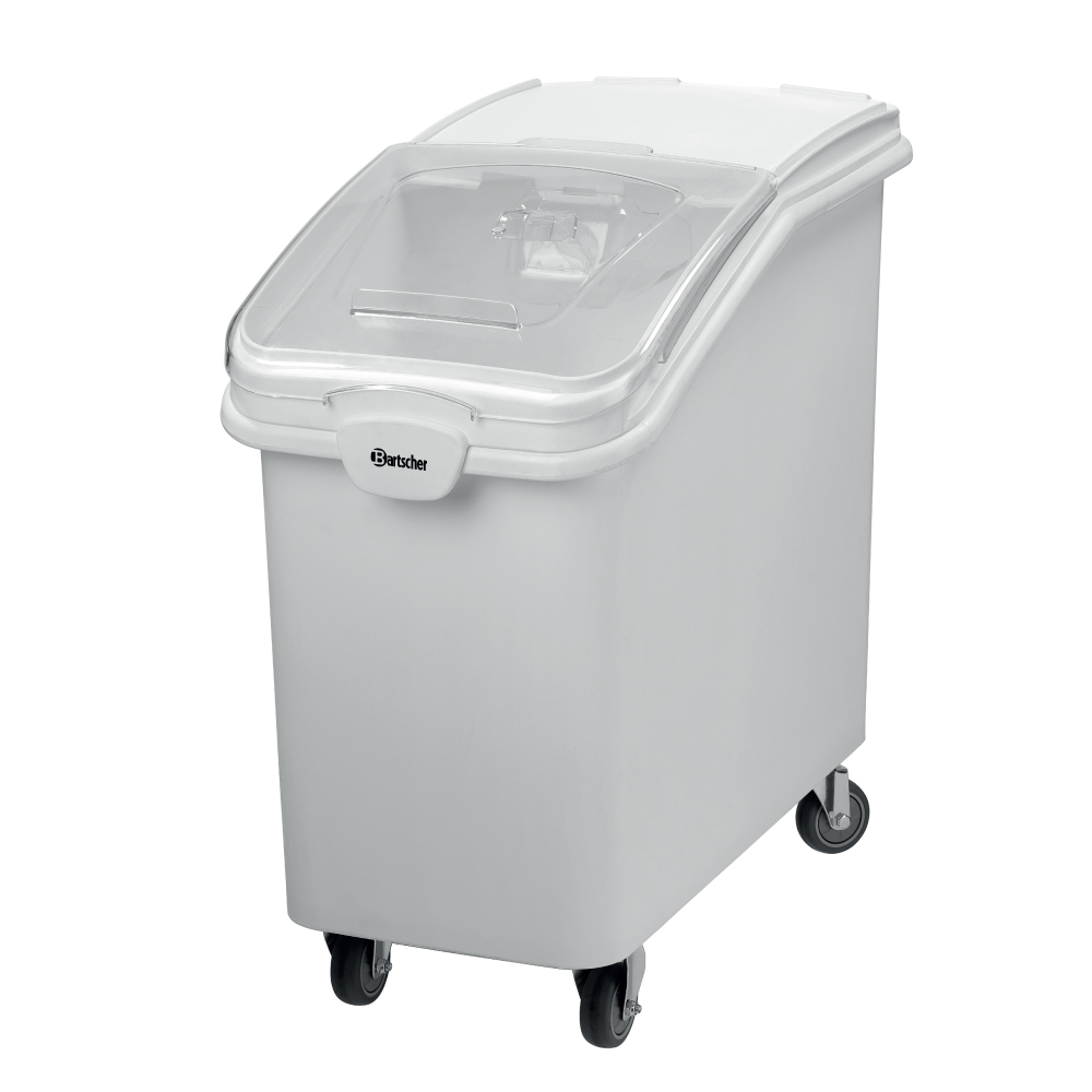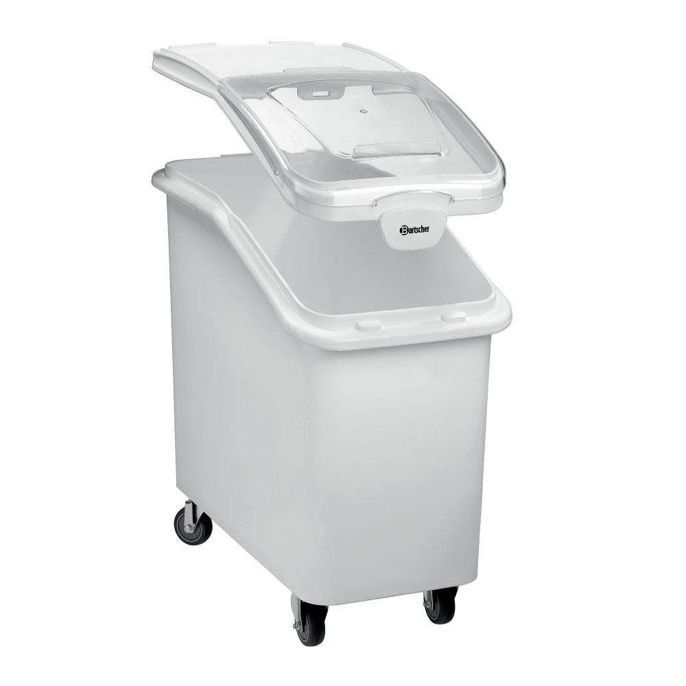 Τροχήλατο δοχείο αποθήκευσης (foodsafe) , χωρητικότητας 102 lt , 500383 Bartscher Γερμανίας. Φορητό, ανθεκτικό δοχείο αποθήκευσης για υγιεινό εφοδιασμό διάφορων ειδών δημητριακών, καθώς και μπαχαρικών, ρυζιού ή ζυμαρικών. Το διάφανο καπάκι επιτρέπει γρήγορη επισκόπηση του ξηρού προϊόντος που βρίσκεται στο δοχείο.