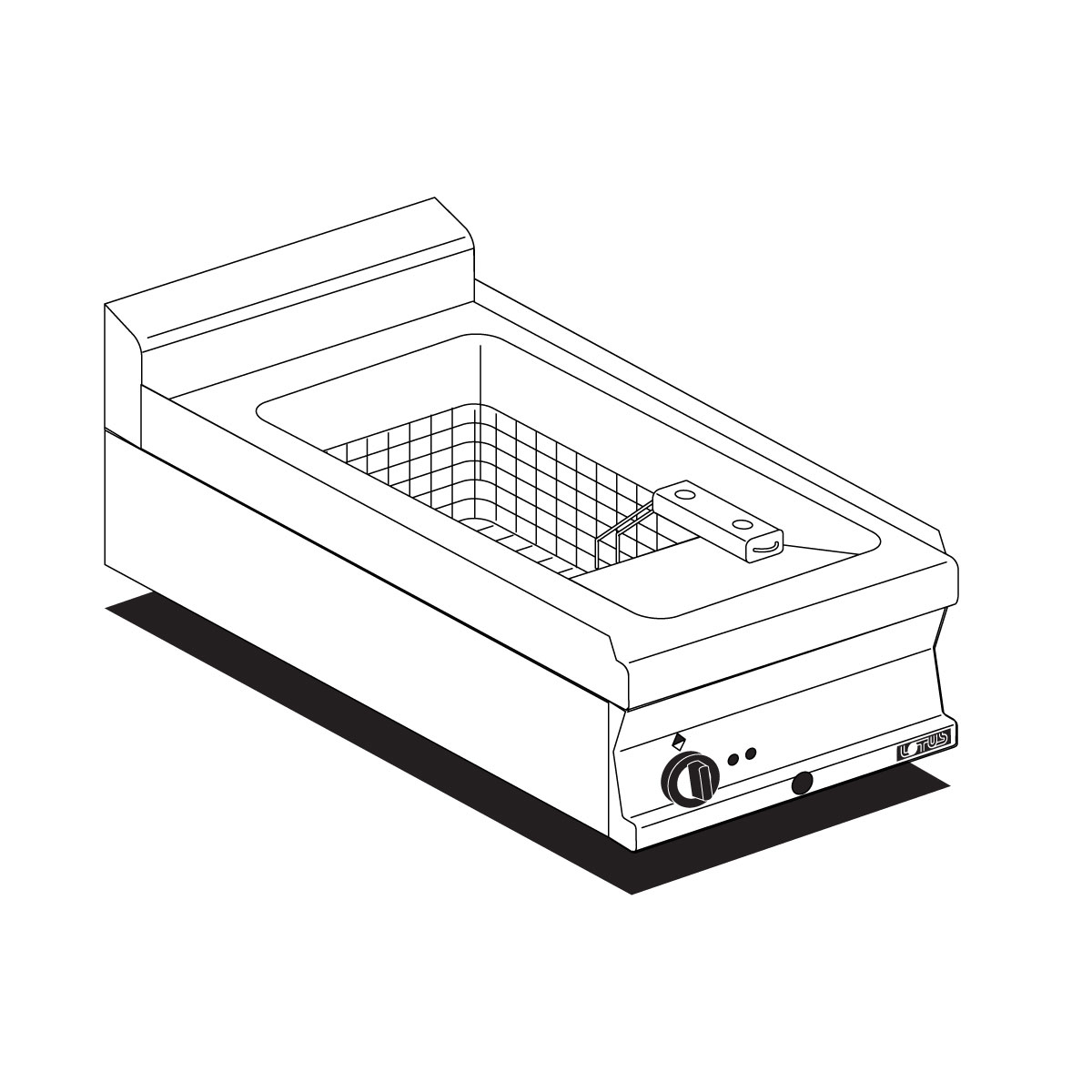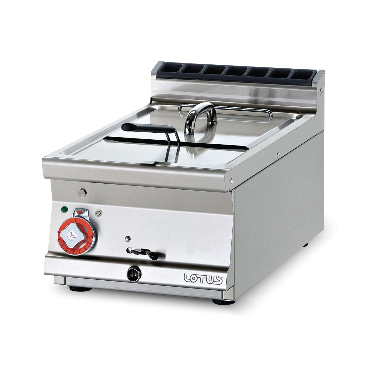 Φριτέζα ηλεκτρική μονή, χωρητικότητας 13 lt, του εργοστασίου Lotus Ιταλίας. Κατασκευασμένο με χρήση ανοξείδωτου χάλυβα ποιότητας (CrNi 18/10 AISI 304) , με διακόπτες αδιάβροχης ποιότητας (IPX5).