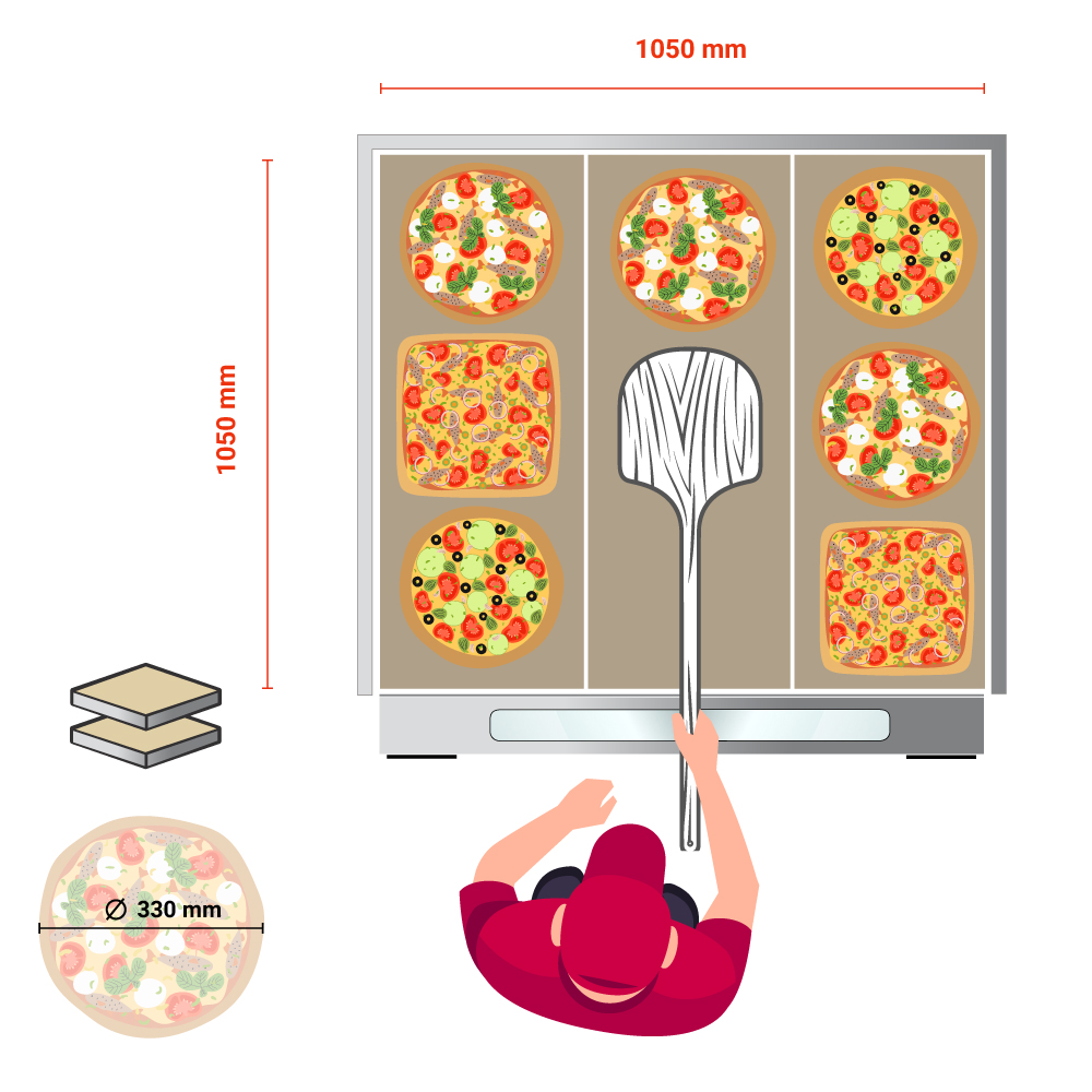 Φούρνος πίτσας διόροφος στενός , με πυρίμαχη πλάκα κάτω πάχους 14 mm, δεκαοκτώ θέσεων (18 x Ø33cm) , του εργοστασίου Redfox.