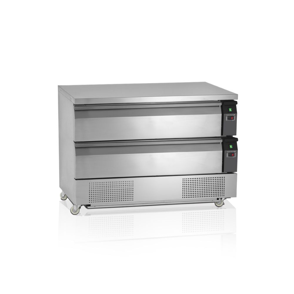 Ανοξείδωτο ψυγείο 2 θερμοκρασιών για 6 GN1/1 με 2 συρτάρια , Tefcold Δανίας. Εύκολη εναλλαγή μεταξύ ψυγείου και καταψύκτη Βεβιασμένη ψύξη για ομοιόμορφη θερμοκρασία Αυτόματη απόψυξη Μεγάλος χώρος αποθήκευσης