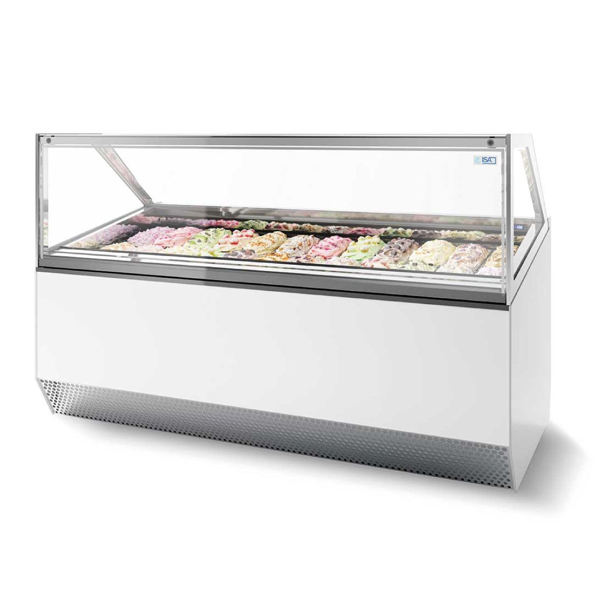 Βιτρίνα παγωτού, βεβιασμένης ψύξης, του εργοστασίου ISA Ιταλίας. Χωρητικότητα 20 λεκανάκια 5lt Μπροστινό τζάμι ίσιο (ST)