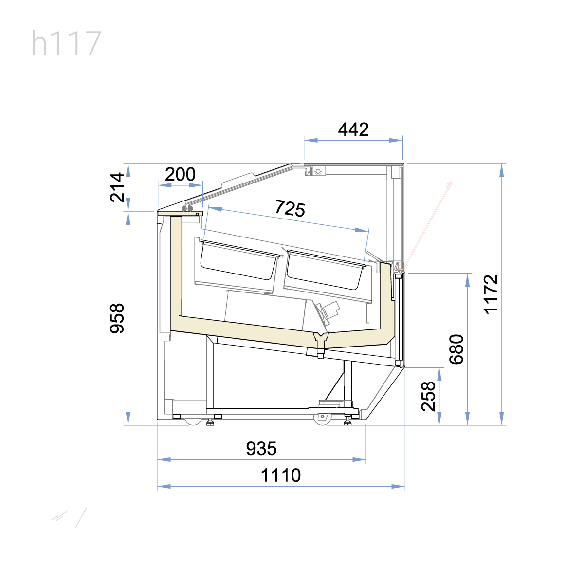 Βιτρίνα παγωτού Plug-in , 2177x1110x1175(h)mm του εργοστασίου ISA. Χωρητικότητα 24 λεκανάκια 5lt. Διπλή ροή του ψυχρού αέρα για ομοιόμορφη ψύξη.