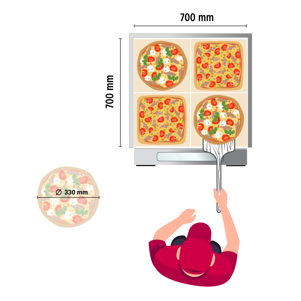 Φούρνος πίτσας στενός , με πυρίμαχη πλάκα κάτω πάχους 14mm , τεσσάρων θέσεων (4 x Ø33cm) , του εργοστασίου Redfox.