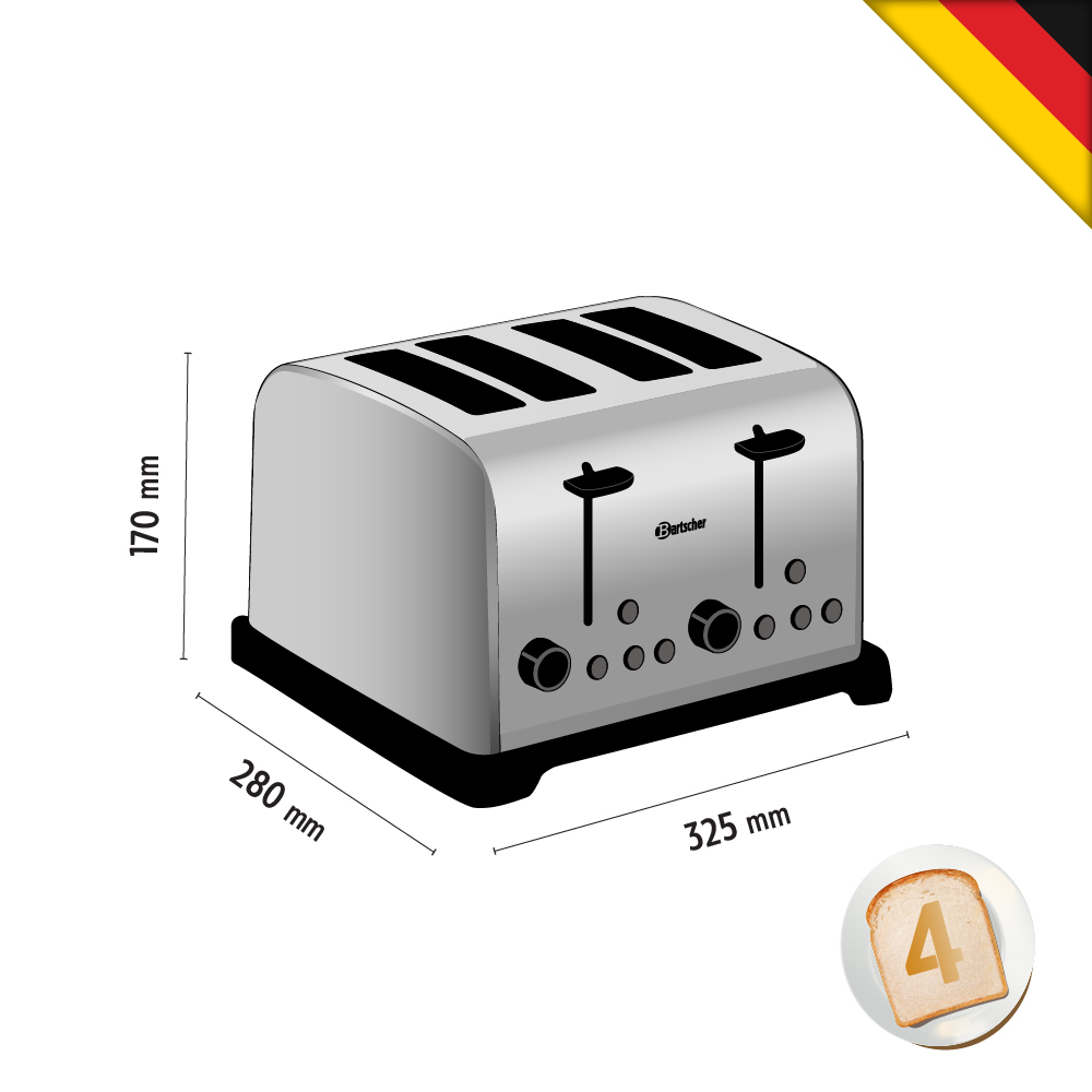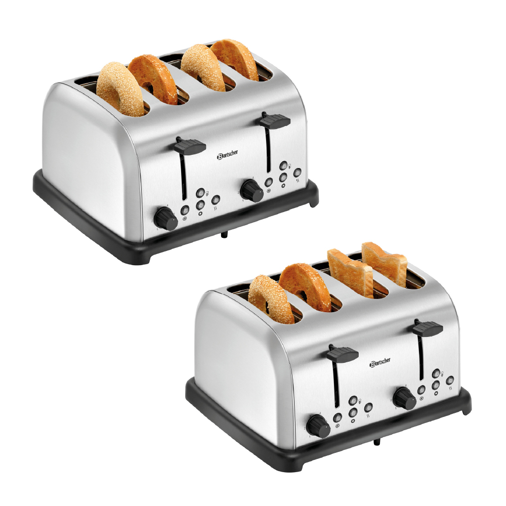 Φρυγανιέρα με 4 υποδοχές , TBRB40 , Bartscher Γερμανίας. H φρυγανιέρα TBRB40 έχει πολλές λειτουργίες για τον μπουφέ του πρωινού: ξεπάγωμα, ζέσταμα και φρυγάνισμα τοστ, τοστ-σάντουιτς και μικρών ψωμιών – δυνατότητα φρυγανίσματος μπέιγκελ ακόμα και από τη μία πλευρά.