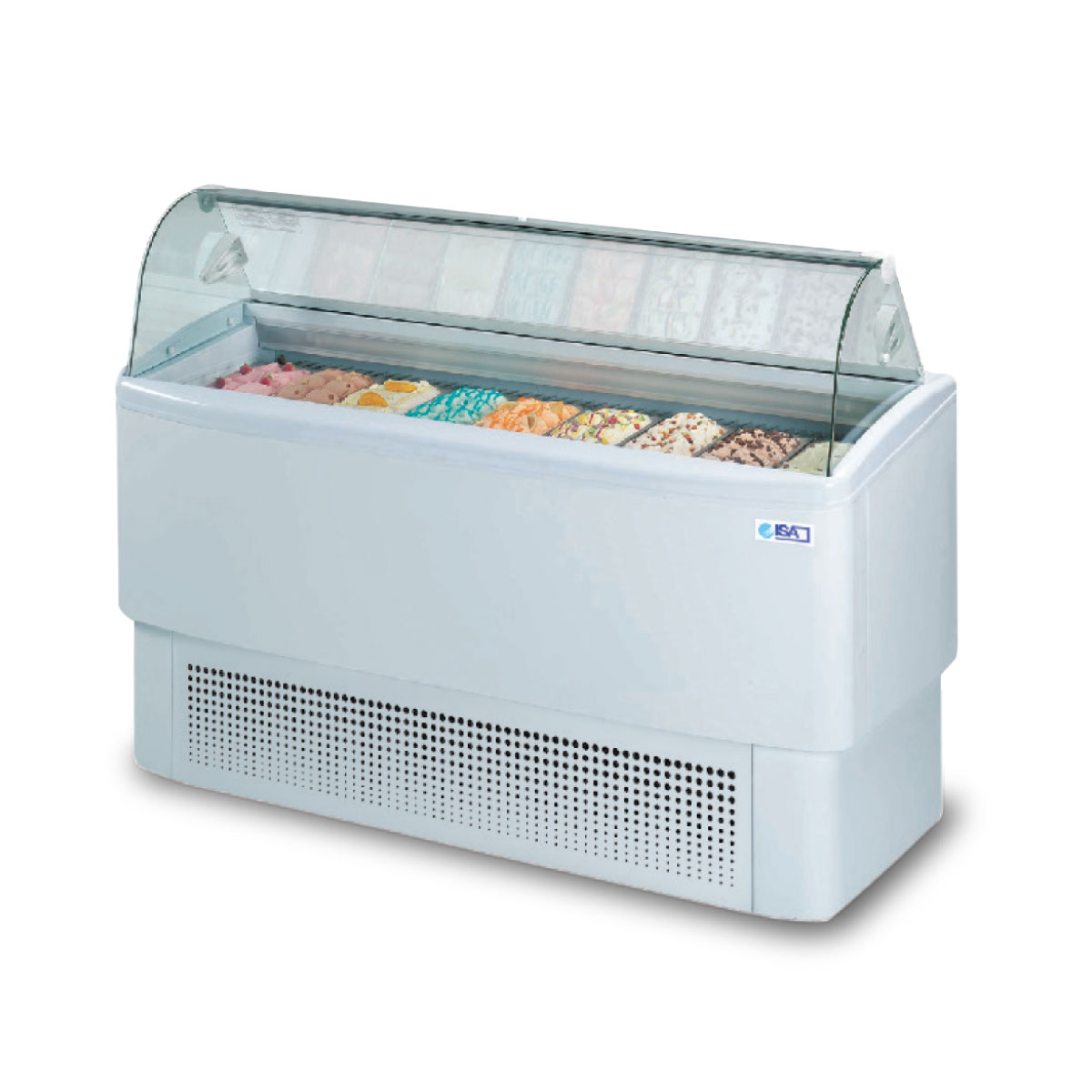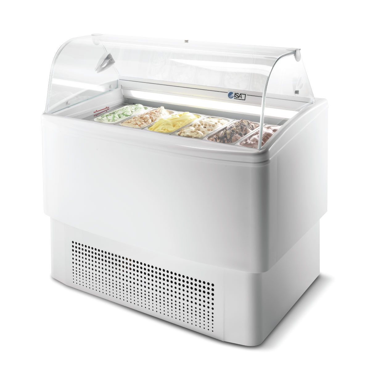 Βιτρίνα παγωτού, βεβιασμένης ψύξης, του εργοστασίου ISA Ιταλίας. Χωρητικότητα 4+4 λεκανάκια 5lt.