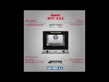 Διαστάσεις 565x585x265(h)mm Διαστάσεις θαλάμου 415x410x120(h)mm Ισχύς 2000 Watt, 230V / 50Hz Θερμοκρασία 50ºC – 350ºC Χρονοδιακόπτης 0-120 min Χρόνος θέρμανσης 10 min Διάμετρος πίτσας Ø 40cm Βάρος 20 kg Κωδικός προμηθευτή 2002102 Πάνω κάτω θερμανση (ξεχωριστή ρύθμιση) Εσωτερικός φωτισμός