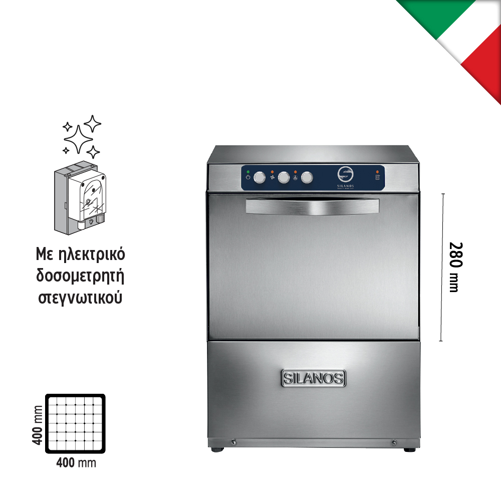 Πλυντήριο ποτηριών-πιάτων με καλάθι 40x40cm , του ιταλικού εργοστασίου Silanos . Συμπεριλαμβάνονται: 2 καλάθια ποτηριών, 1 θήκη «πυραμίδα» για πιατάκια & 1 θήκη για μαχαιροπήρουνα