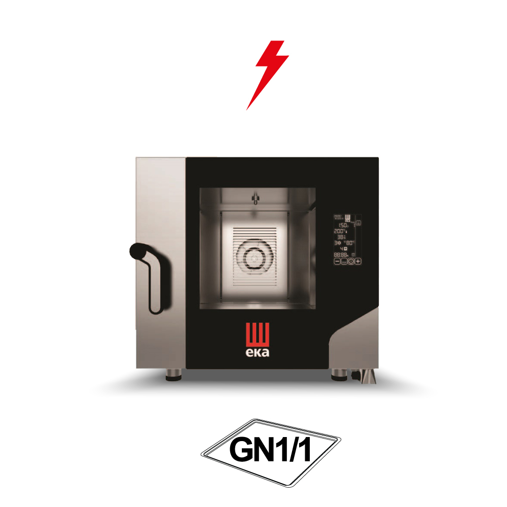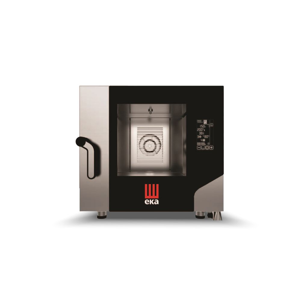 Κυκλοθερμικός φούρνος ηλεκτρικός απευθείας ψεκασμού , 5 θέσεων (gn 1/1), με ενσωματωμένο αυτόματο πλύσιμο , EKA Italy. Με χωρητικότητα 5 λαμαρίνες 1/1 GN και το νέο πάνελ BLACK MASK ο φούρνος MKF 511 Black Mask προσφέρει υψηλή απόδοση για καλύτερα αποτελέσματα στην κουζίνα αλλά και μαγείρεμα σε γρήγορους χρόνους που έχουν ως αποτέλεσμα μειωμένη κατανάλωση. Ένας φούρνος υψηλής απόδοσης με τα πατενταρισμένα συστήματα Airflowlogic και Humilogic, μπορεί να αποθηκεύσει 100 συνταγές και διαθέτει αυτόματο πλύσιμο για καθαρό φούρνο στο τέλος της μέρας.