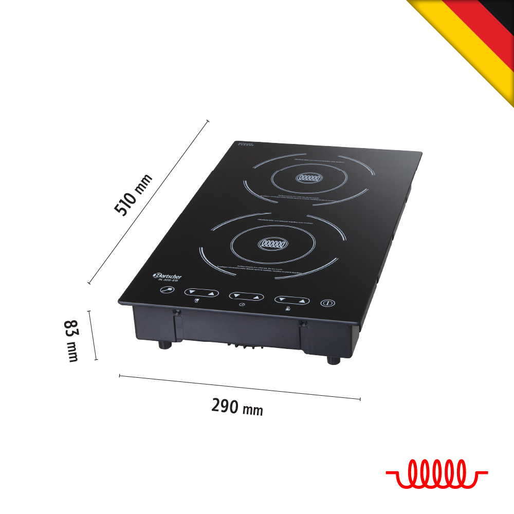 Εντοιχιζόμενη επαγωγική (induction) ηλεκτρονική εστία διπλή IK 30S-EB, Bartscher Γερμανίας. Επαγωγική εστία με δυνατότητα εντοιχισμού, εξοικονόμηση χώρου, εστίες που βρίσκονται η μία πίσω από την άλλη και μια ενιαία επιφάνεια Schott Ceran.