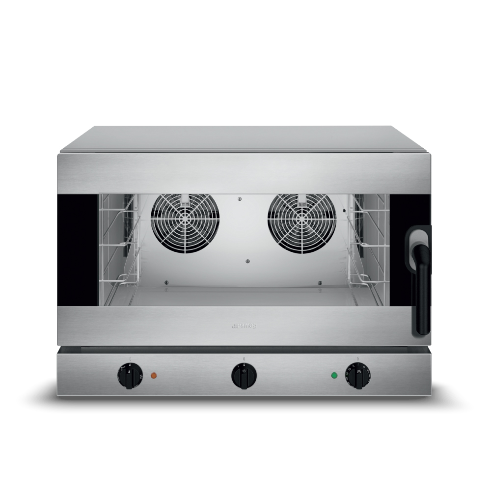 Κυκλοθερμικός φούρνος με υγραντήρα απ’ευθείας ψεκασμού, χωρητικότητας 4 λαμαρινών (600x400mm)του εργοστασίου Smeg Ιταλίας. Λειτουργίες : Αερόθερμο Ψήσιμο & Υγραντήρας (άνω των 150ºC)