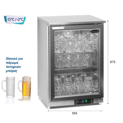 Εξωτερικές διαστάσεις 600x600x850(h)mm Εσωτερικές διαστάσεις 484x470x620(h)mm Χωρητικότητα 200 lt Θερμοκρασία -24ºC / -10ºC Ισχύς 150Watt / 220-240V / 50Hz Ψύξη Βεβιασμένη Απόψυξη Αυτόματη Ψυκτικό υγρό R290 Ράφια 3 (490x380mm) Φωτισμός LED Εσωτερικός Κλιματική κλάση 4 (+30ºC & 55%RH) Καθαρό Βάρος 47 Kg Aυτόματη επαναφορά πόρτας Κλειδαριά 2 ρυθμιζόμενα ποδαράκια & 2 ροδάκια Ηλεκτρονικός θερμοστάτης – θερμόμετρο