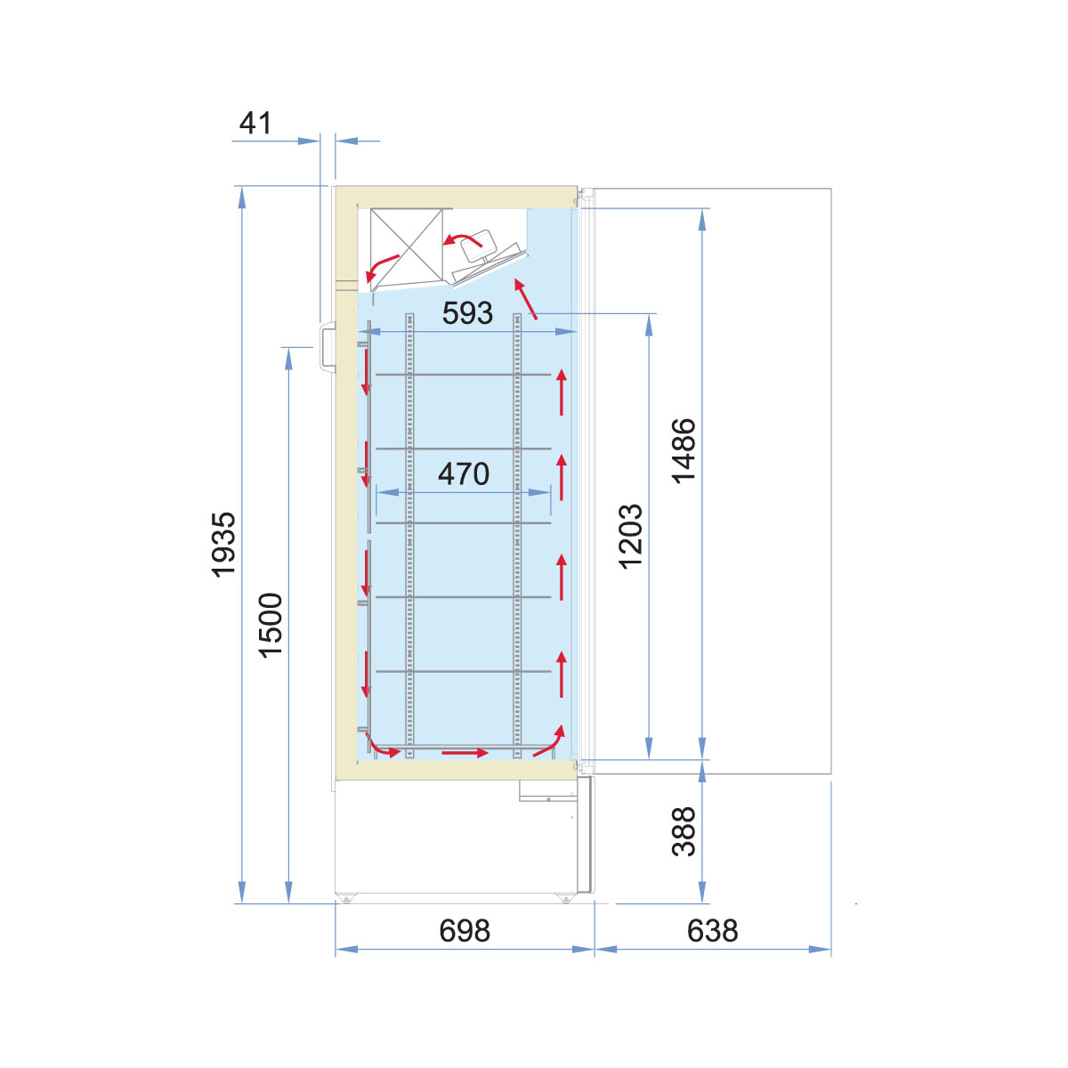 Βιτρίνα κατάψυξης, βεβιασμένης ψύξης, χωρητικότητας 485 lt του εργοστασίου ISA Ιταλίας.