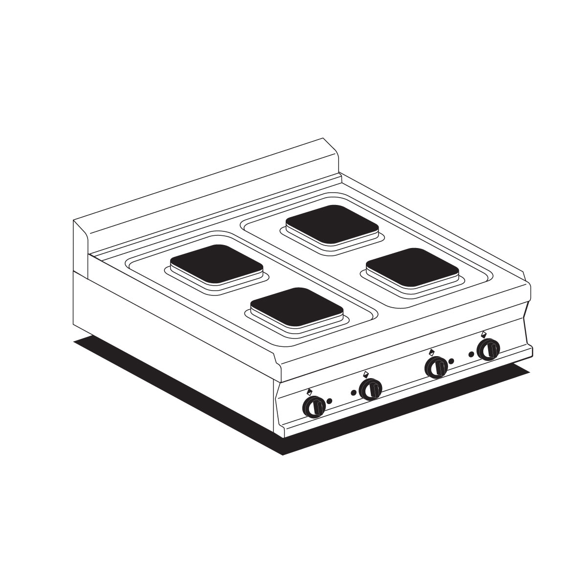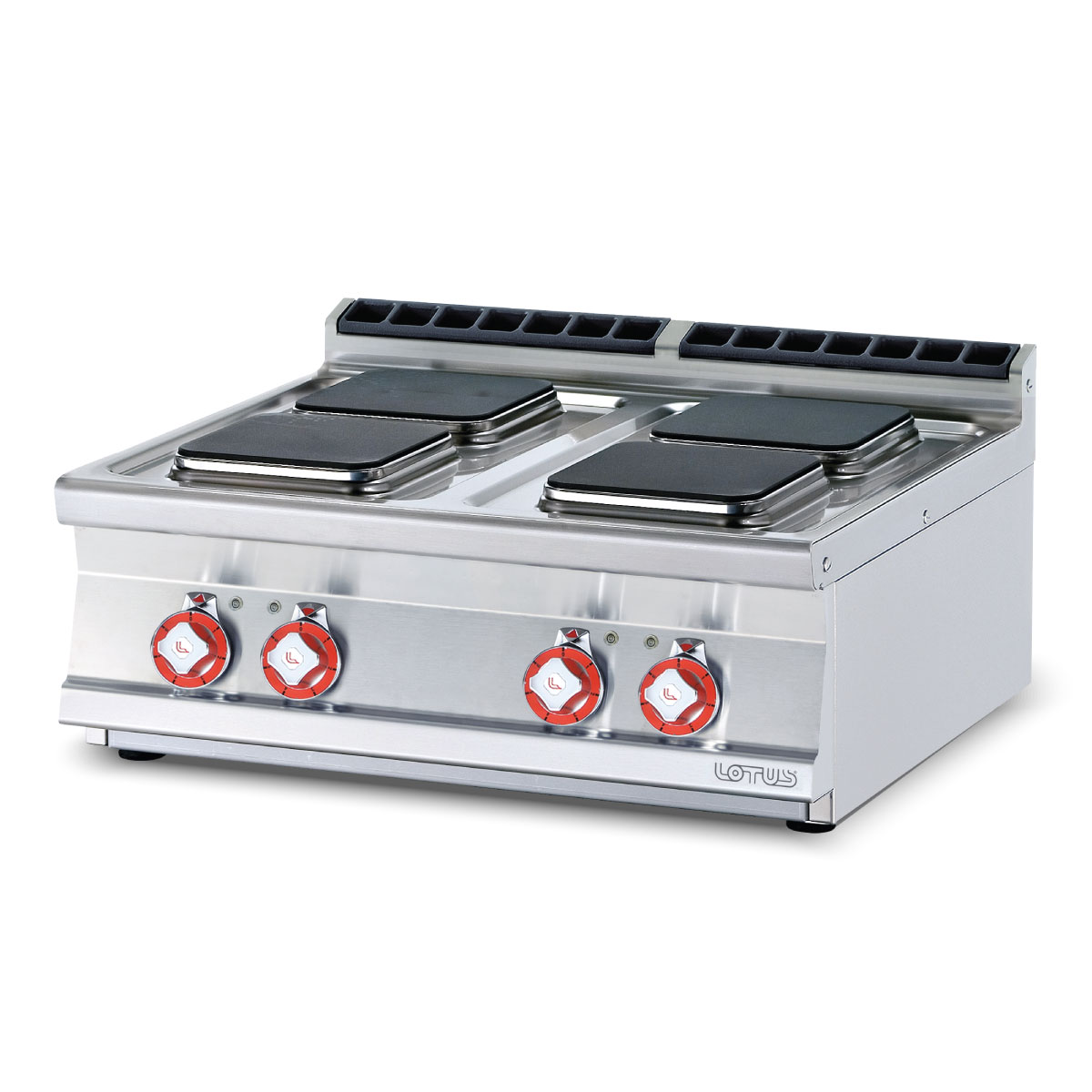 Ηλεκτρική επιτραπέζια εστία τετραπλή (10,4Κwatt) , του εργοστασίου Lotus Ιταλίας. Κατασκευασμένο με χρήση ανοξείδωτου χάλυβα ποιότητας (CrNi 18/10 AISI 304) , με διακόπτες αδιάβροχης ποιότητας (IPX5).