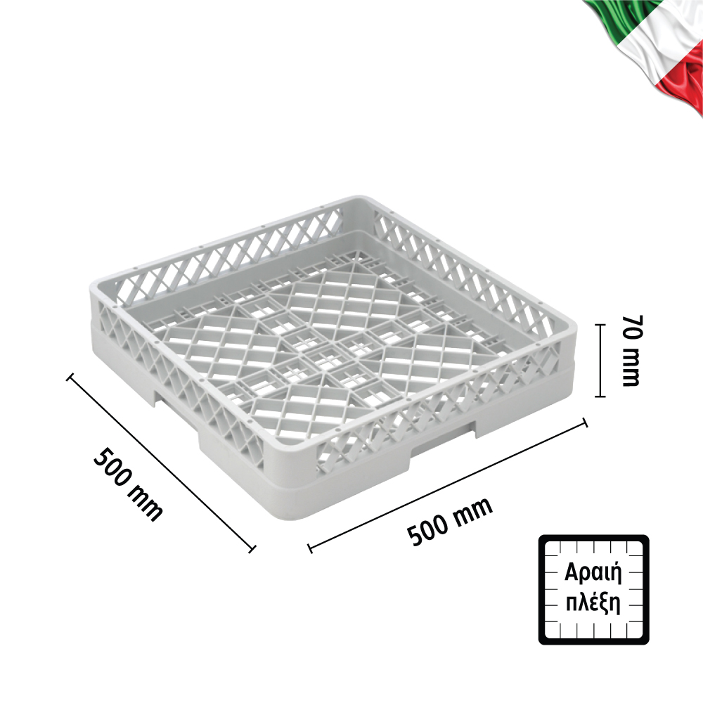 Καλάθι γενικής χρήσης & αραιής πλέξης για ποτήρια (500x500x70mm) κατασκευασμένο από προπυλένιο , του ιταλικού εργοστασίου Silanos.