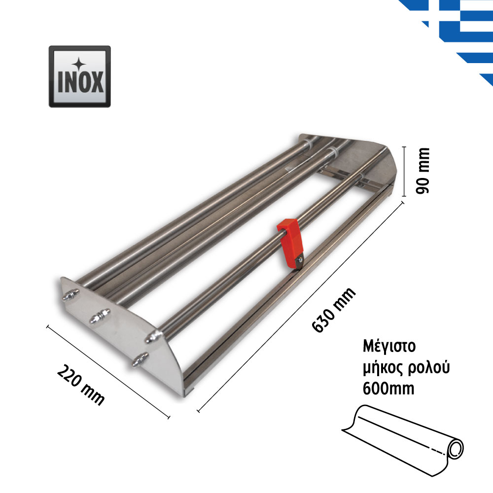 Βάση ανοξείδωτη για μεμβράνη τροφίμων. Μπορεί να χρησιμοποιηθεί για μεμβράνες έως και 60cm.