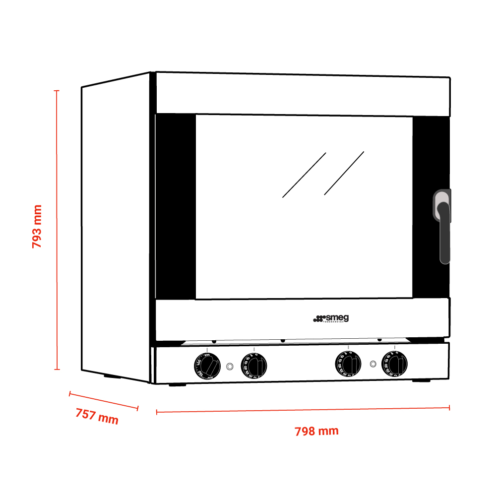Κυκλοθερμικός φούρνος με υγραντήρα , χωρητικότητας 6 λαμαρινών (600x400mm) του εργοστασίου Smeg Ιταλίας. Λειτουργίες : Αερόθερμο Ψήσιμο & Υγραντήρας (άνω των 150ºC)