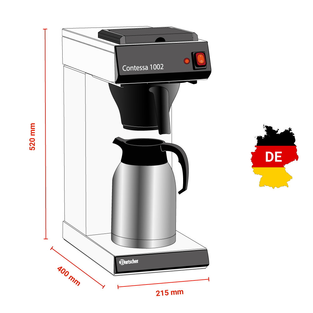 Μηχανή καφέ φίλτρου μονή, Bartscher Γερμανίας Για την παραδοσιακή απόλαυση του καφέ – Η ισοθερμική κανάτα της Contessa 1002 διαθέτει χώρο για έως 2 λίτρα φρέσκου καφέ. (Αντικατέστησε τον κωδικό 190155)