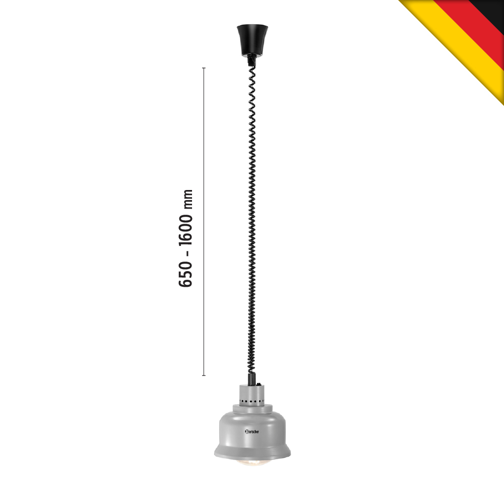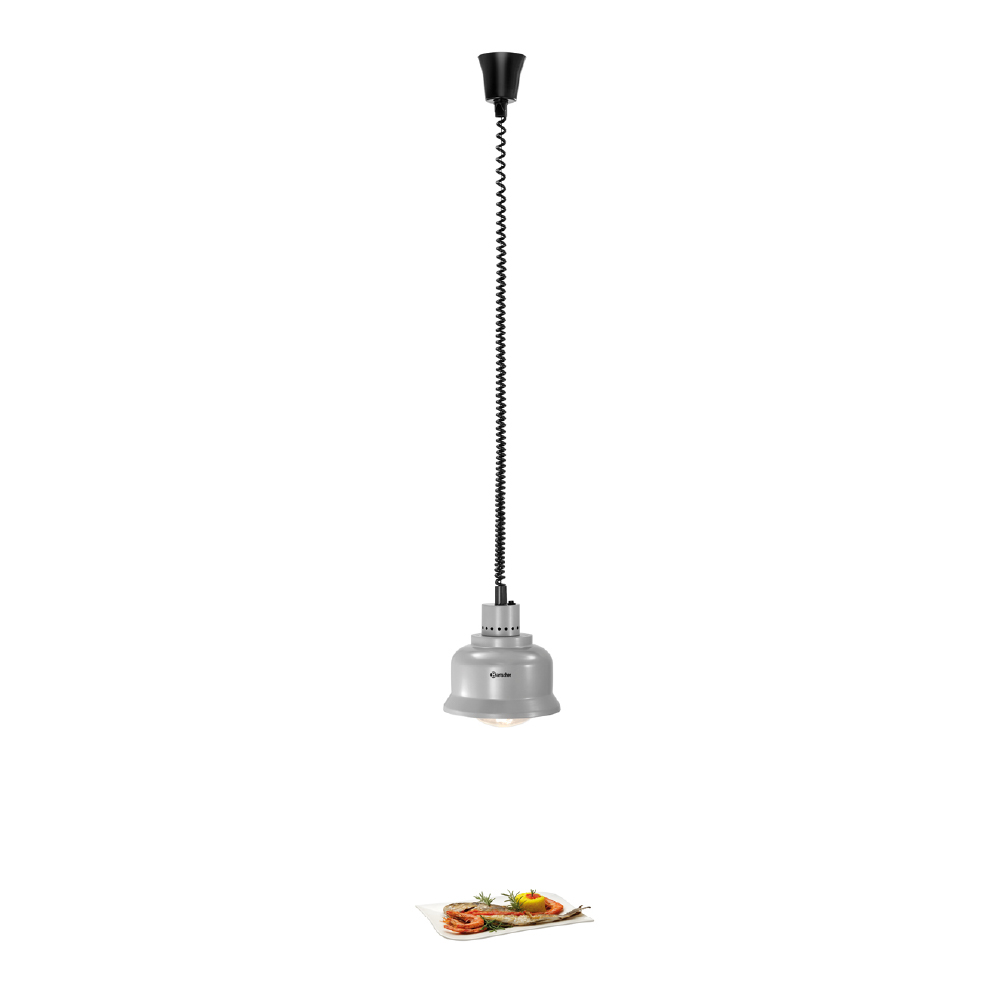 Θερμαντική λυχνία , IWL250D SI, Bartscher Γερμανίας. Θερμότητα με υπέρυθρες ακτίνες με ευελιξία – Θερμαντική λυχνία με σύστημα αιώρησης-ανύψωσης για κατάλληλη διατήρηση θερμότητας τροφίμων.