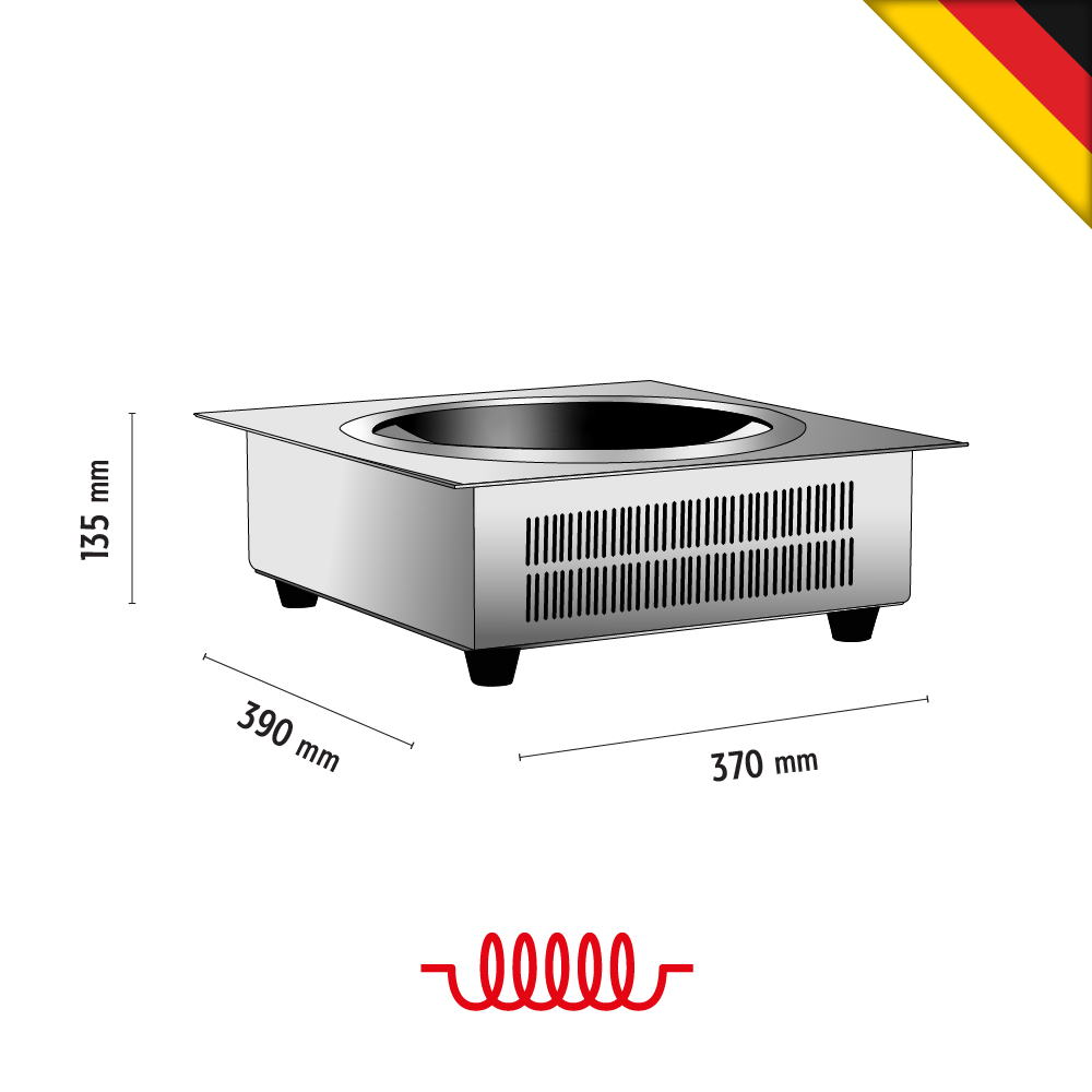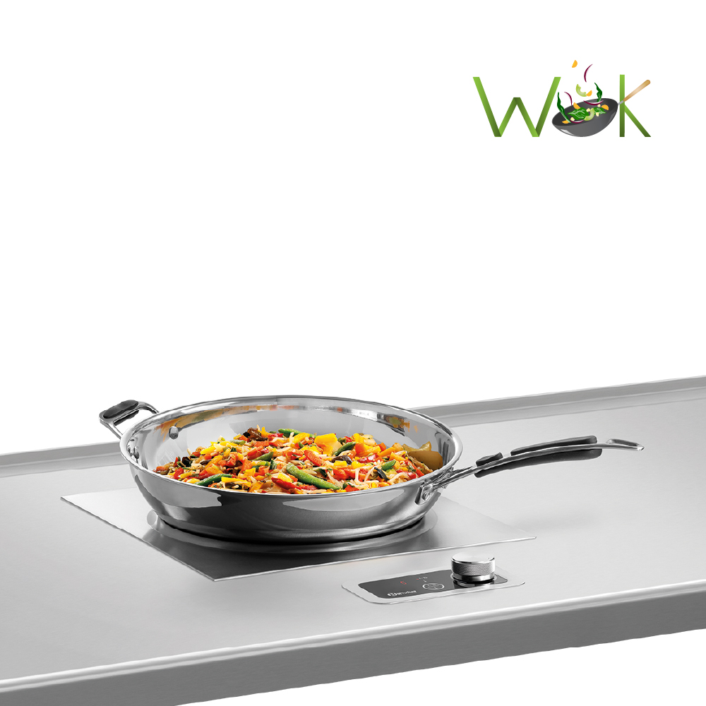 Επαγωγική εστία ηλεκτρονική WOK IW35-EB, Bartscher Γερμανίας. Το επαγωγικό γουόκ μπορεί να ενσωματωθεί σε πλάκες τραπεζιού και πλάκες εργασίας και προσφέρει έτσι ιδανικό ύψος εργασίας. Το ξεχωριστό πεδίο χειρισμού καθιστά δυνατή μια αδιαβάθμητη ρύθμιση από 60 έως 240 °C. Εναλλακτικά υπάρχουν 10 βαθμίδες απόδοσης προς επιλογή.