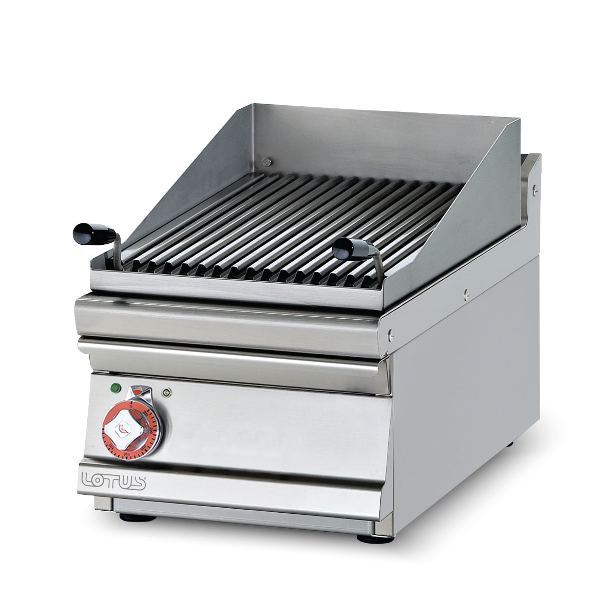 Γκριλιέρα ηλεκτρική μονή (6Kwatt) , του εργοστασίου Lotus Iταλίας. Κατασκευασμένο με χρήση ανοξείδωτου χάλυβα ποιότητας (CrNi 18/10 AISI 304) , με διακόπτες αδιάβροχης ποιότητας (IPX5).