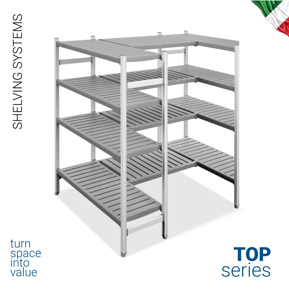 Σύστημα αποτελούμενο από ορθοστάστες αλουμινίου & ράφια υψηλής πυκνότητας πρωτογενούς πολυαιθυλένιου , Tonon Ιταλίας. Το μοναδικό με την Ευρωπαική πιστοποίηση HCV-EU. NSF : Διεθνές πιστοποιητικό ποιότητας Κατασκευή από ανοδιώμενο αλουμίνιο 20μm(micron) , εγγύηση κατά της σκουριάς. Θερμοκρασίες χρήσης από -30°C μέχρι +90°C. Μέγιστο πιστοποιημένο βάρος φόρτωσης 250Kg ανά επίπεδο φορτίου. Easy Clean : Εύκολος καθαρισμός. Συναρμολόγηση χωρίς ειδικά εργαλεία , εύκολη & γρήγορη με ένα κλίκ. Επιφάνεια ραφιών από πολυαιθυλένιο υψηλής πυκνότητας (High Density). Προσαρμόζεται απόλυτα στο χώρο σας. Πλενόμενα ράφια σε επαγγελματικά πλυντήρια