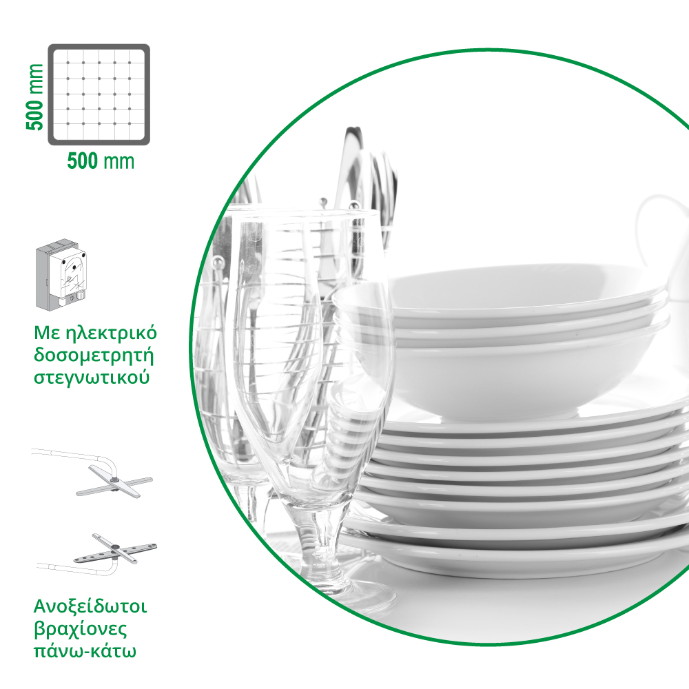 Πλυντήριο ποτηριών-πιάτων με αντλία εξαγωγής για καλάθι 50x50cm