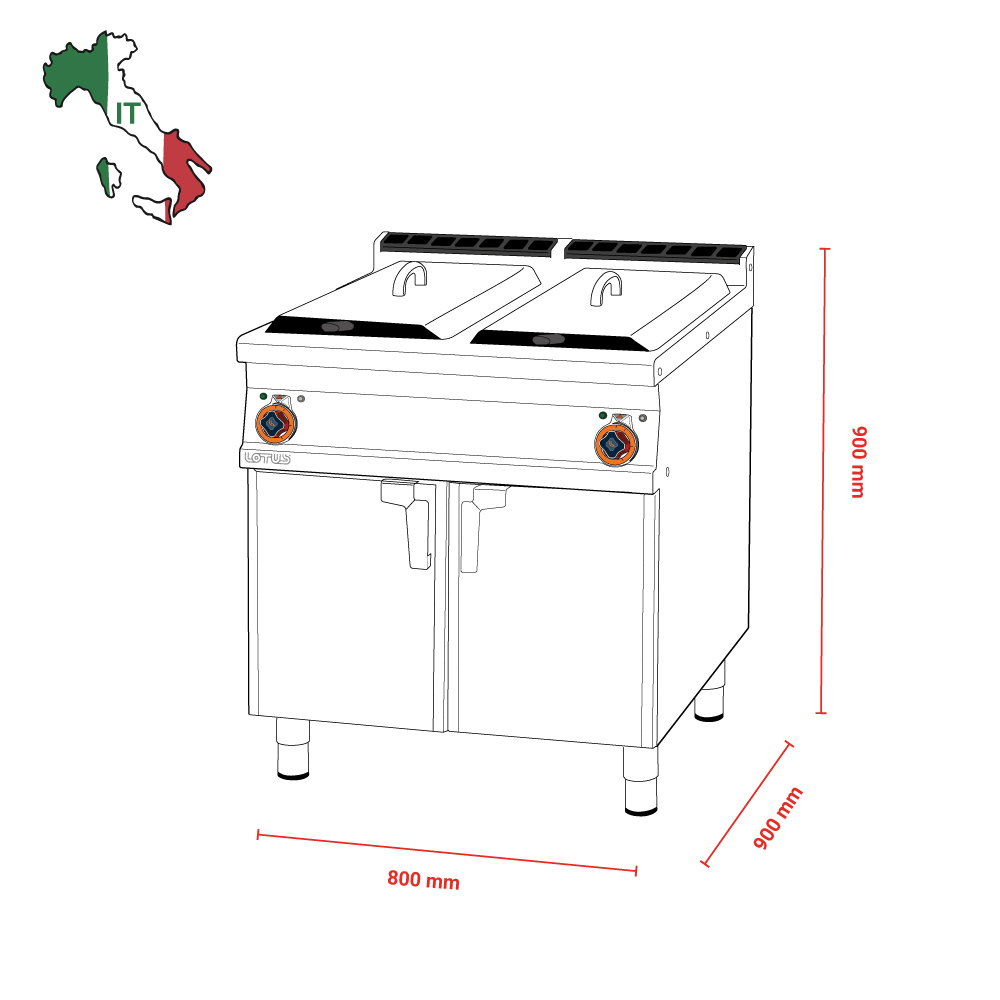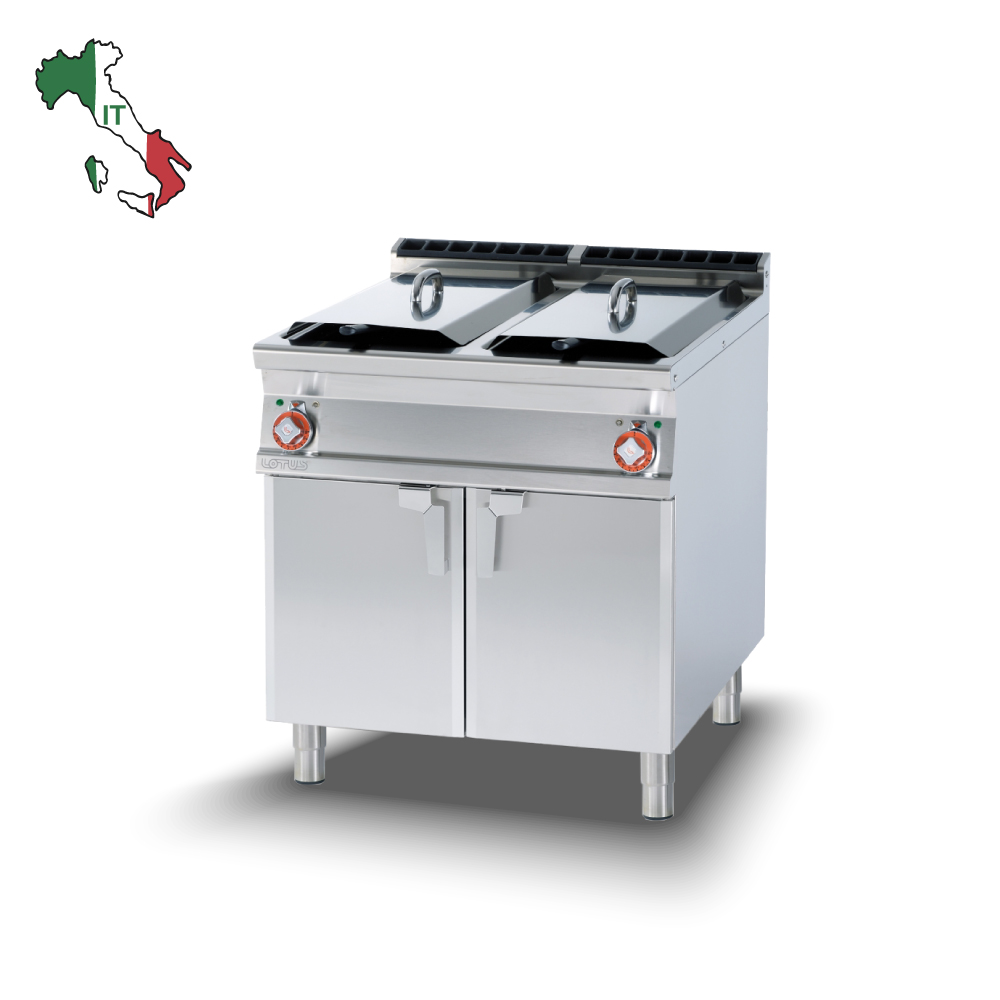Φριτέζα ηλεκτρική επιδαπέδια διπλή, χωρητικότητας 25+25 lt, του εργοστασίου Lotus Ιταλίας.