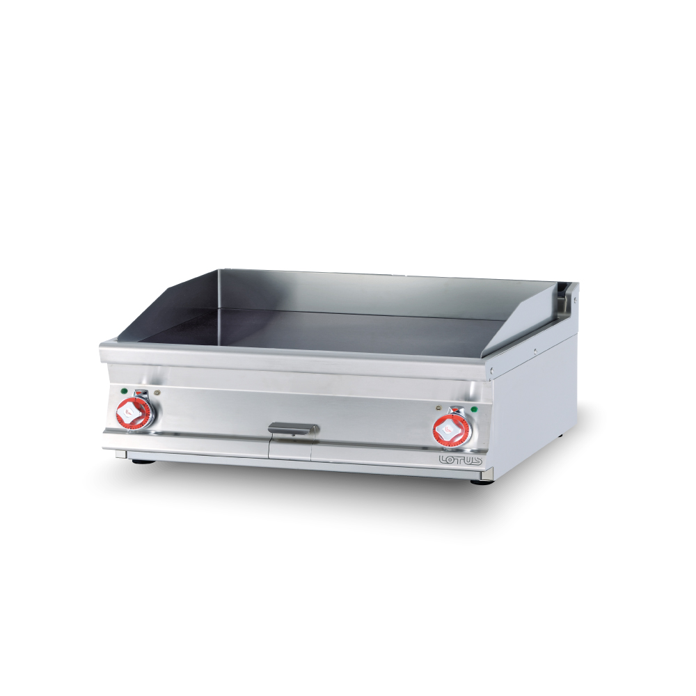 Πλατώ ηλεκτρικό , διπλό λείο, του εργοστασίου Lotus Ιταλίας. Κατασκευασμένο με χρήση ανοξείδωτου χάλυβα ποιότητας (CrNi 18/10 AISI 304) , με διακόπτες αδιάβροχης ποιότητας (IPX5).