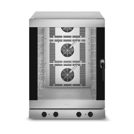 Διαστάσεις 602x584x537(h)mm Χωρητικότητα 4 λαμαρίνες (435x320mm) Απόσταση μεταξύ θέσεων 80 mm Θερμοστάτης 50ºC – 270ºC Ισχύς 3kW / 230V/ 1N / 50Hz Χρονοδιακόπτης 1-60′ ρυθμιζόμενος & συνεχής Λειτουργίες Αερόθερμο Ψήσιμο Grill Στατικό ψήσιμο (πάνω-κάτω) Στατικό (κάτω) Ανεμιστήρας 2 ταχυτήτων Υγραντήρας άνω των 150ºC Βάρος 33,5 Kg Αποσπώμενο & εύκολα καθαριζόμενο εσωτερικό τζάμι πόρτας Ισχυρότερος & μεγαλύτερος σε διάμετρο ανεμιστήρας με αποτέλεσμα άριστη κυκλοφορία μεγαλύτερης ποσότητας αέρα INOX εξωτερικά Ιδανικός για ελληνικά προϊόντα ζύμης Περιλαμβάνονται 4 λαμαρίνες αλουμινίου 435x320mm
