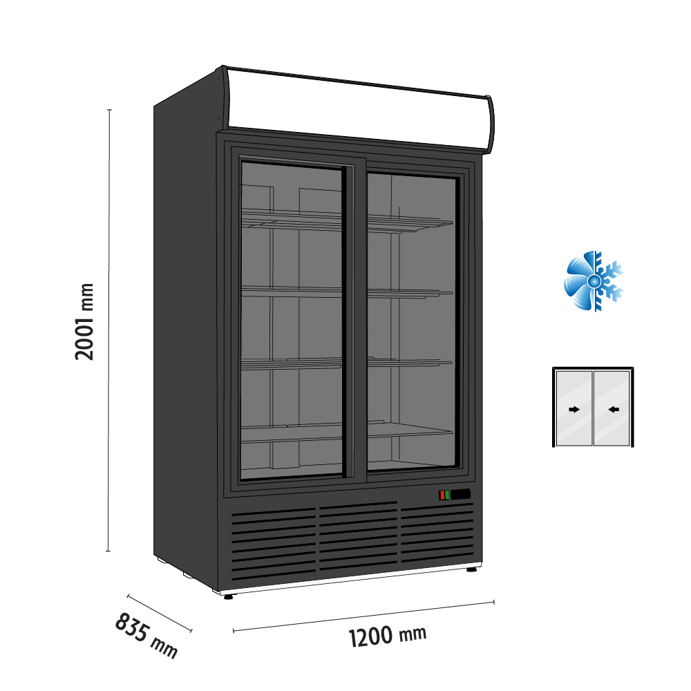 Βιτρίνα συντήρησης όρθια διπλή με συρόμενες πόρτες, χωρητικότητας 1230lt, του εργοστασίου Metalfrio.