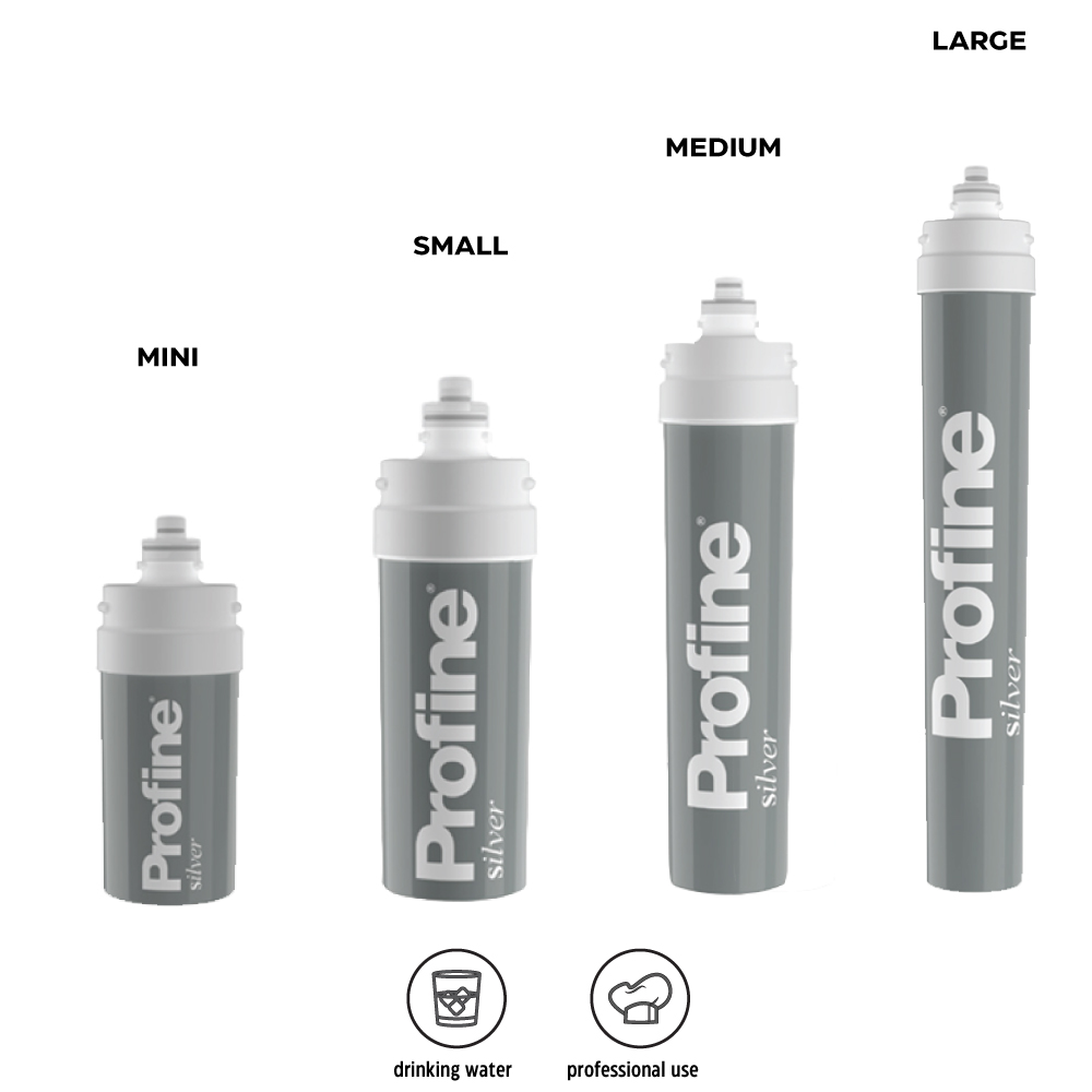 Ανταλλακτικό φίλτρο Profine Silver Large , διαμέτρου 87,4mm , της εταιρίας ThinkWater Ιταλίας. Το PROFINE® SILVER αφαιρεί τις άσχημες οσμές και τις δυσαάρεστες γεύσεις , μειώνει το χλώριο και έχει φίλτρανση 0.5 microns. To φυσίγγιο είναι μιας χρήσης και παράγεται με τεχνολογία Profine® Carbon Block εμπλουτισμένη με ασήμια για βακτηριοστατική λειτουργία. ΓΕΝΙΚΑ ΧΑΡΑΚΤΗΡΙΣΤΙΚΑ Χάρη στην παρουσία ιόντων αργύρου η αντιβακτηριακή δράση του συστήματος επεξεργασίας είναι εγγυημένη.Το Profine® Silver έχει πιστοποιηθεί απο την TIFQ LAB & συμμορφώνεται με τα υψηλά πρότυπα ποιότητας πουα απαιτούνται απο την ιταλική νομοθεσία σχετικά με τα συστήματα επεξεργασίας νερού. ΧΡΗΣΗ Φιλτράρισμα για οικιακά συστήματα επεξεργασίας νερού. ΑΝΤΙΚΑΤΑΣΤΑΣΗ Συνιστούμε την αντικατάσταση του δοχείου στο τέλος της παραγωγικότητας του ή εάν η ροή εξόδου είναι πολύ αργή.Ωστόσο το δοχείο πρέπει να αντικατασταθεί εντός 365 ημερών απο την τοποθέτηση του.Πριν αφαιρέσετε το φυσίγγιο , κλείστε την παροχή του νερού εκτονώστε την πίεση από το κύκλωμα ανοίγωντας την βρύση.Γυρίστε το άδειο δοχείο κατα 90° δεξιόστροφα και στη συνέχεια αφαιρέστε το δοχείο από την κεφαλή.Για να ενεργοποιήσετε σωστά το φυσίγγιο , ανοίξτε την βαλβίδα εισαγωγής και τροφοδοτήστε νερό για τουλάχιστον 5 λεπτά πρίν το πιείτε. Το ξέπλυμα του φυσιγγίου κρίνεται απαραίτητο μετά απο σύντομες περιόδους αδράνειας ενώ σε περίπτωση παρατεταμένης αδράνειας είναι απαραίτητη ή απολύμανση του συστήματος.