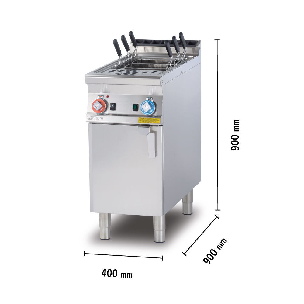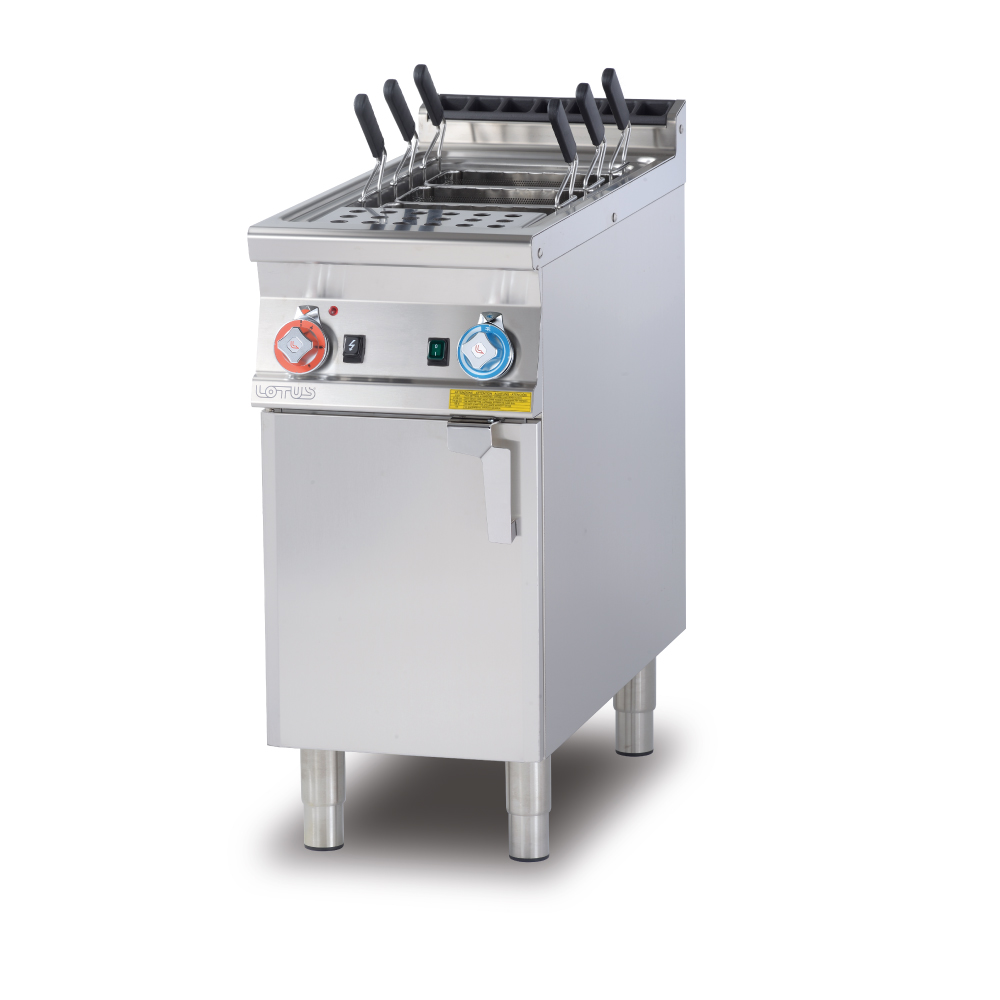Επιδαπέδιος βραστήρας ζυμαρικών αερίου , χωρητικότητας 40 lt, του εργοστασίου Lotus Ιταλίας. Κατασκευασμένο με χρήση ανοξείδωτου χάλυβα ποιότητας (CrNi 18/10 AISI 304) , με διακόπτες αδιάβροχης ποιότητας (IPX5).