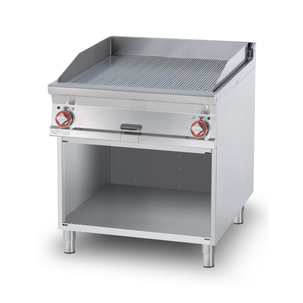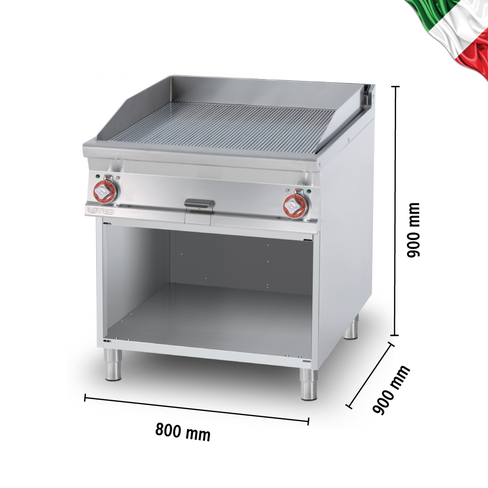 Πλατώ επιδαπέδιο ηλεκτρικό διπλό ραβδωτό , του εργοστασίου Lotus Ιταλίας Κατασκευασμένο με χρήση ανοξείδωτου χάλυβα ποιότητας (CrNi 18/10 AISI 304) , με διακόπτες αδιάβροχης ποιότητας (IPX5).