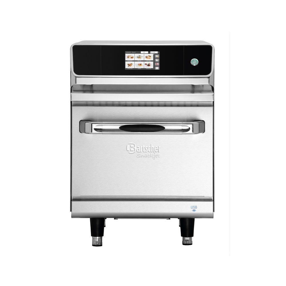 Ταχυφούρνος Snackjet 200 , Bartscher Γερμανίας. Το Snackjet της Bartscher αποτελεί τον ιδανικό φούρνο High Speed τόσο στο πλαίσιο συστήματος υπηρεσιών εστίασης όσο και σε άλλους τομείς εστίασης. Ο συνδυασμός φούρνου θερμού αέρα και μικροκυμάτων καθιστά δυνατό το τραγανιστό και ταυτόχρονα φρέσκο και ζουμερό μαγείρεμα σχεδόν όλων των σνακ. Με τα 1024 προγράμματα και τις 15 φάσεις μαγειρέματος μπορούν να ετοιμαστούν σε πολύ σύντομο χρόνο γρήγορα και εύκολα διάφορα φαγητά.