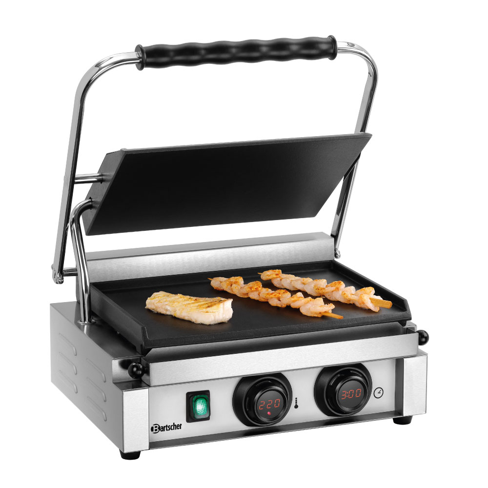 Τοστιέρα μεσαία ηλεκτρική , με λεία επιφάνεια , Panini-MDI 1G Bartscher Γερμανίας. Άριστη θερμική αγωγιμότητα , ανθεκτική κατασκευή και εύκολο χειρισμό με μοχλό με ψηφιακή ένδειξη , χρονομετρητή και ακουστικό σήμα.