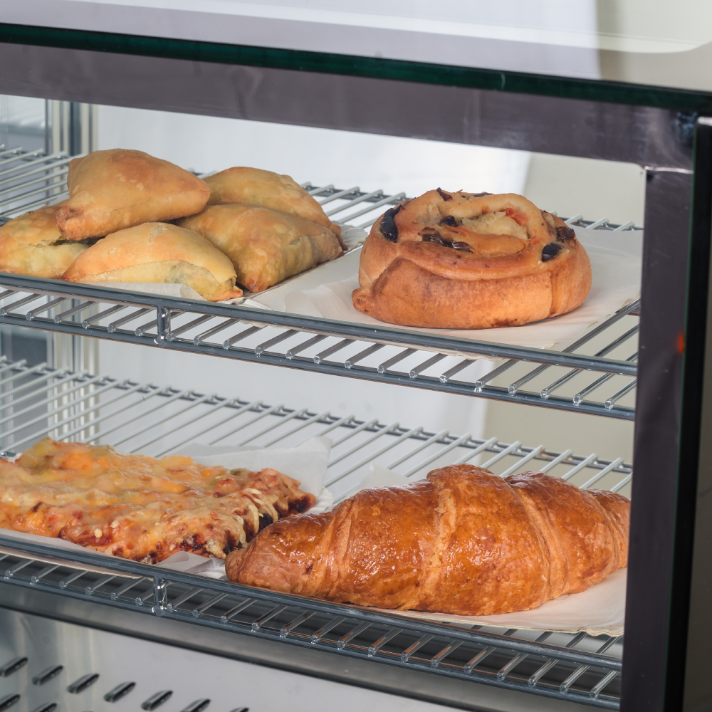 Επιτραπέζια θερμαινόμενη πανοραμική βιτρίνα – θερμοθάλαμος inox , χωρητικότητας 125 lt , με φωτισμό Led.