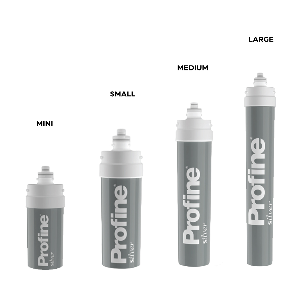 Ανταλλακτικό φίλτρο Profine Silver Mini , διαμέτρου 87,4mm , της εταιρίας ThinkWater Ιταλίας. Το PROFINE® SILVER αφαιρεί τις άσχημες οσμές και τις δυσαάρεστες γεύσεις , μειώνει το χλώριο και έχει φίλτρανση 0.5 microns. To φυσίγγιο είναι μιας χρήσης και παράγεται με τεχνολογία Profine® Carbon Block εμπλουτισμένη με ασήμια για βακτηριοστατική λειτουργία. ΓΕΝΙΚΑ ΧΑΡΑΚΤΗΡΙΣΤΙΚΑ Χάρη στην παρουσία ιόντων αργύρου η αντιβακτηριακή δράση του συστήματος επεξεργασίας είναι εγγυημένη.Το Profine® Silver έχει πιστοποιηθεί απο την TIFQ LAB & συμμορφώνεται με τα υψηλά πρότυπα ποιότητας πουα απαιτούνται απο την ιταλική νομοθεσία σχετικά με τα συστήματα επεξεργασίας νερού. ΧΡΗΣΗ Φιλτράρισμα για οικιακά συστήματα επεξεργασίας νερού. ΑΝΤΙΚΑΤΑΣΤΑΣΗ Συνιστούμε την αντικατάσταση του δοχείου στο τέλος της παραγωγικότητας του ή εάν η ροή εξόδου είναι πολύ αργή.Ωστόσο το δοχείο πρέπει να αντικατασταθεί εντός 365 ημερών απο την τοποθέτηση του.Πριν αφαιρέσετε το φυσίγγιο , κλείστε την παροχή του νερού εκτονώστε την πίεση από το κύκλωμα ανοίγωντας την βρύση.Γυρίστε  το άδειο δοχείο κατα 90° δεξιόστροφα και στη συνέχεια αφαιρέστε το δοχείο από την κεφαλή.Για να ενεργοποιήσετε σωστά το φυσίγγιο , ανοίξτε την βαλβίδα εισαγωγής και τροφοδοτήστε νερό για τουλάχιστον 5 λεπτά πρίν το πιείτε. Το ξέπλυμα του φυσιγγίου κρίνεται απαραίτητο μετά απο σύντομες περιόδους αδράνειας ενώ σε περίπτωση παρατεταμένης αδράνειας είναι απαραίτητη ή απολύμανση του συστήματος.