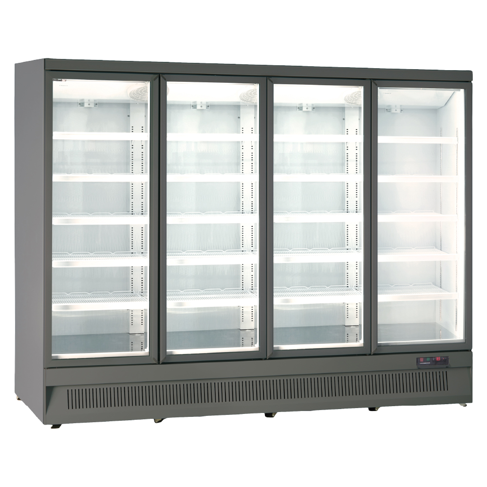 Βιτρίνα συντήρησης όρθια τετραπλή , χρώματος grey (RAL7015) , βεβιασμένης ψύξης , με 4 ανοιγόμενες πόρτες , χωρητικότητας 2060 lt. Προμηθευτής : KlimaItalia