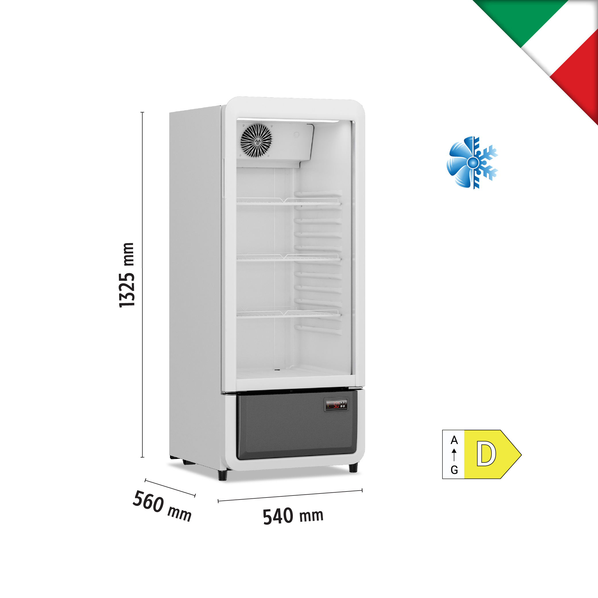 Βιτρίνα συντήρησης όρθια μονή, βεβιασμένης ψύξης, χωρητικότητας 200 lt, του εργοστασίου KlimaItalia.