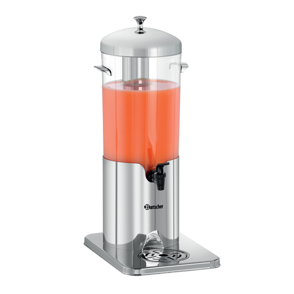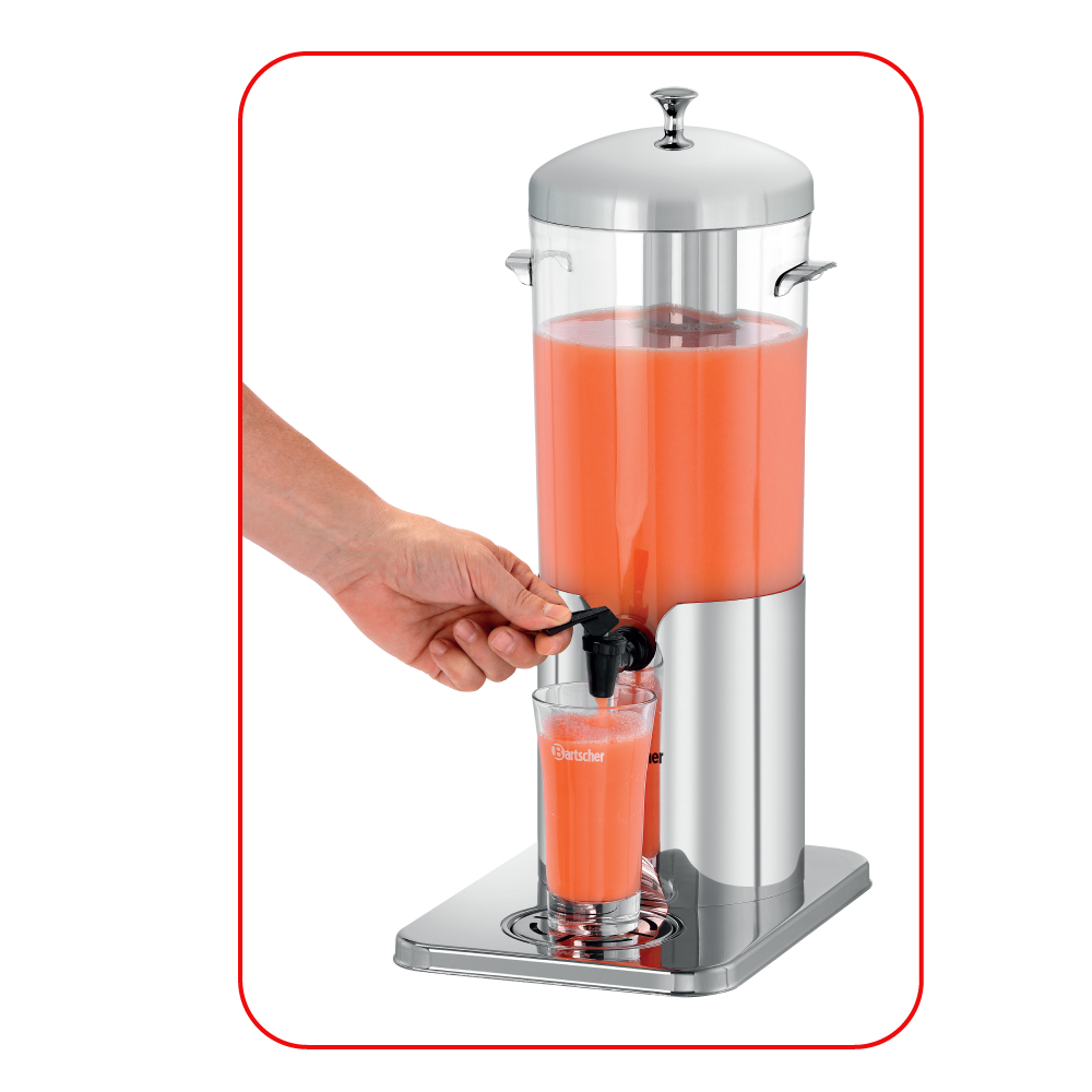 Διανεμητής ροφημάτων 5lt, Bartscher Γερμανίας. Παγωμένα ροφήματα: Μέσω ενός ψυκτικού σωλήνα (γέμισμα με παγάκια) ψύχονται 5 λίτρα χυμός, νερό και άλλα. Ο διανεμητής σε ελκυστικό σχέδιο μπορεί έτσι να χρησιμοποιηθεί πλήρως μεμονωμένα στον μπουφέ ή στο κέτερινγκ.