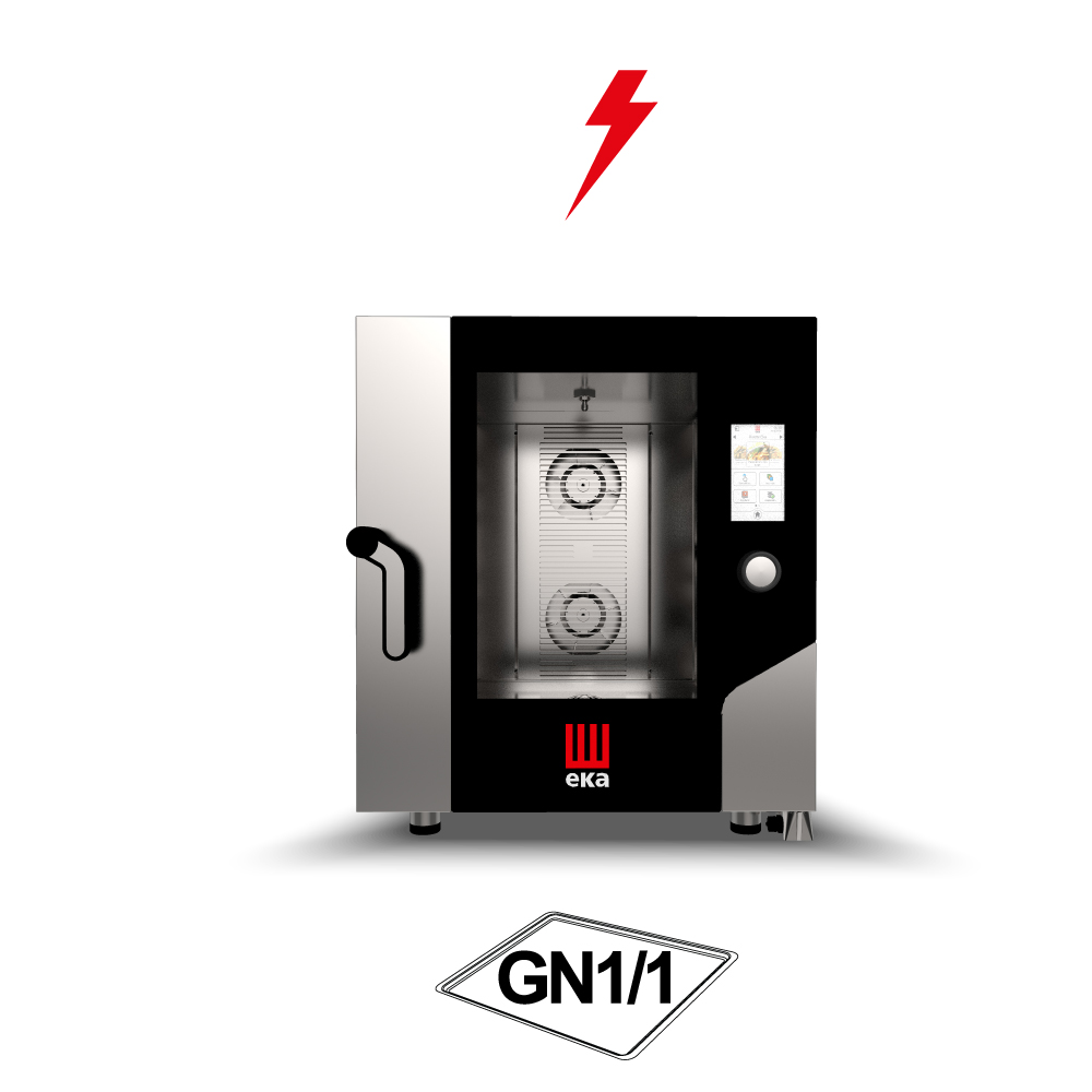 Κυκλοθερμικός φούρνος ηλεκτρικός απευθείας ψεκασμού με οθόνη αφής & ενσωματωμένο αυτόματο πλύσιμο , 7 θέσεων (GN 1/1), EKA Italy. Με τον φούρνο MKF 711 Touch Screen της σειράς Millennial μπορείτε να έχετε όλα όσα θέλατε πάντα στην κουζίνα σας. Δυνατότητα αποθήκευσης 500 συνταγών μαγειρικής και εύκολη χρήση χάρη στην οθόνη αφής (touch screen).