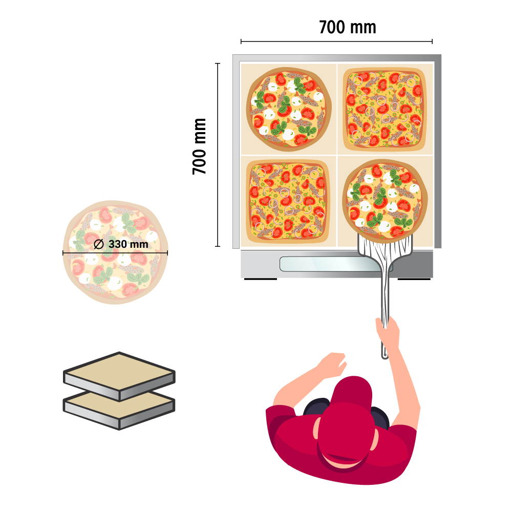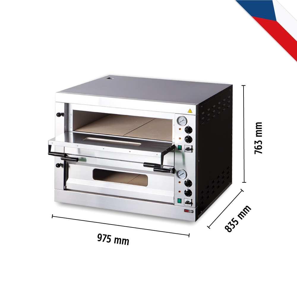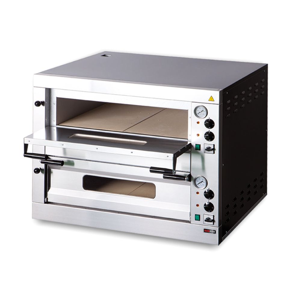 Φούρνος πίτσας διόροφος στενός , με πυρίμαχη πλάκα κάτω πάχους 14 mm, οκτώ θέσεων (8 x Ø33cm) , του εργοστασίου Redfox.