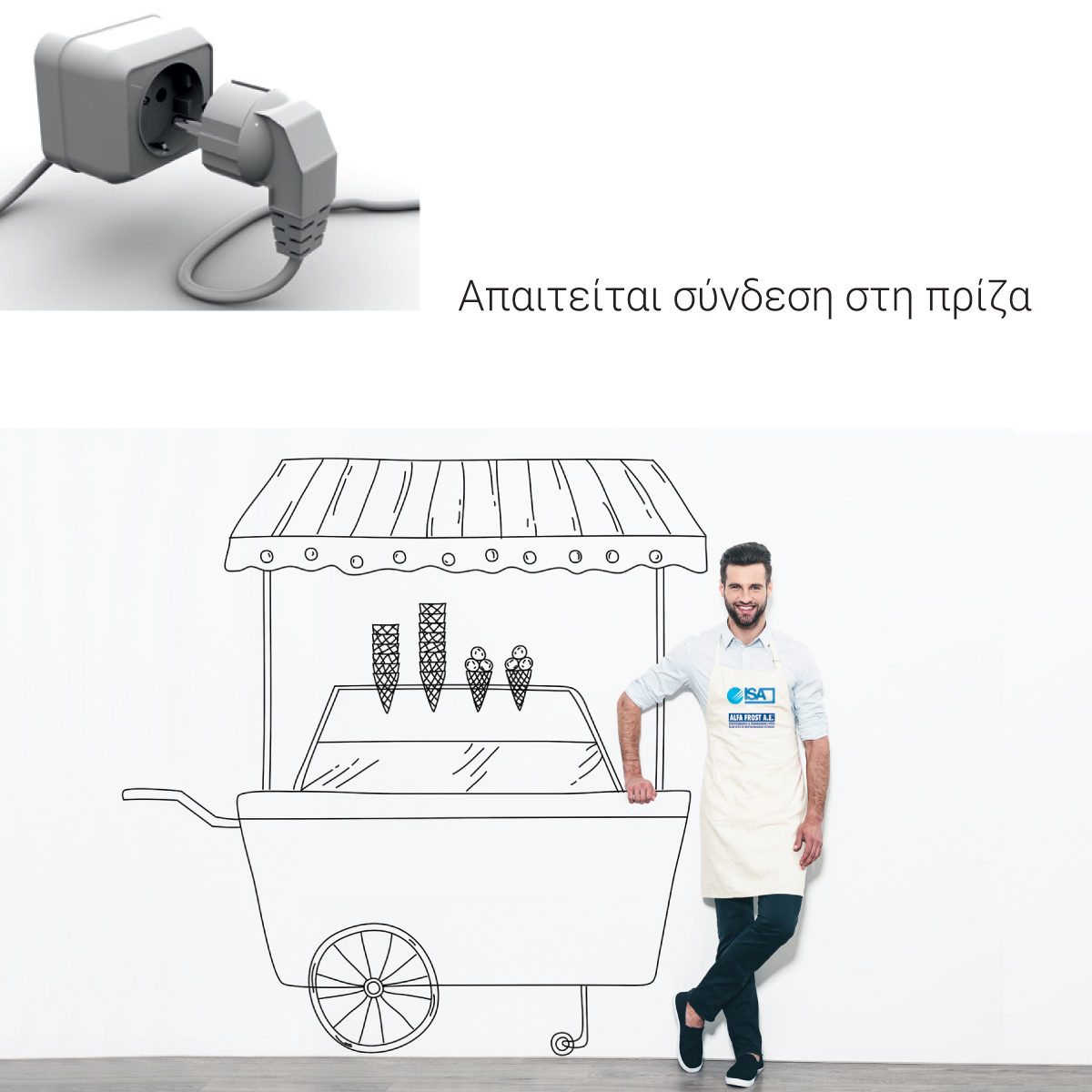 Τροχήλατη βιτρίνα παγωτού (λειτουργεί συνδεδεμένη πάντα στο ηλεκτρικό ρεύμα), του εργοστασίου ISA Ιταλίας. Χωρητικότητα 8 καραπίνες 7lt.