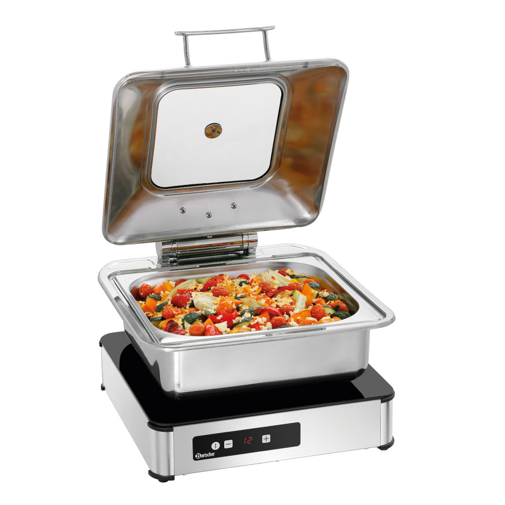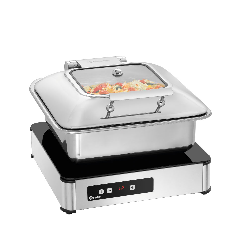 Θερμαινόμενη επαγωγική επιφάνεια (300W) , IW3 Bartscher Γερμανίας. O σχεδιασμός αυτής της θερμαινόμενης πλάκας κάνει κάθε μπουφέ να φαίνεται πιο ελκυστικός. Η πρακτική λύση σύνδεσης και ενεργοποίησης 4 συσκευών σε ένα ηλεκτρικό κύκλωμα με το προαιρετικά διαθέσιμο καλώδιο εξασφαλίζει επιπλέον ενιαία εμφάνιση υψηλής ποιότητας κατά τη διανομή φαγητού.