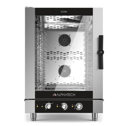 Φούρνος Icon αερίου 10 θέσεων (600x400mm ή GN 1/1), με μηχανικό χειρισμό , Alphatech Ιταλίας. Οι φούρνοι Icon αποτελούν την ιδανική λύση για επιχειρήσεις όπως cafe-bar , αναψυκτήρια , μικρά εστιατόρια ή εταιρίες. Οι μικρές τους διαστάσεις σε συνδυασμό με τις υψηλές προδιογραφές τους δίνουν στον χρήστη του φούρνου την δυνατότητα για γρήγορη και εξαιρετικής ποιότητας παρασκευής φαγητού. Κάθε πιάτο είναι ένα αριστούργημα από το μαγείρεμα στον ατμό , το τηγάνισμα και το ψήσιμο στην σχάρα.