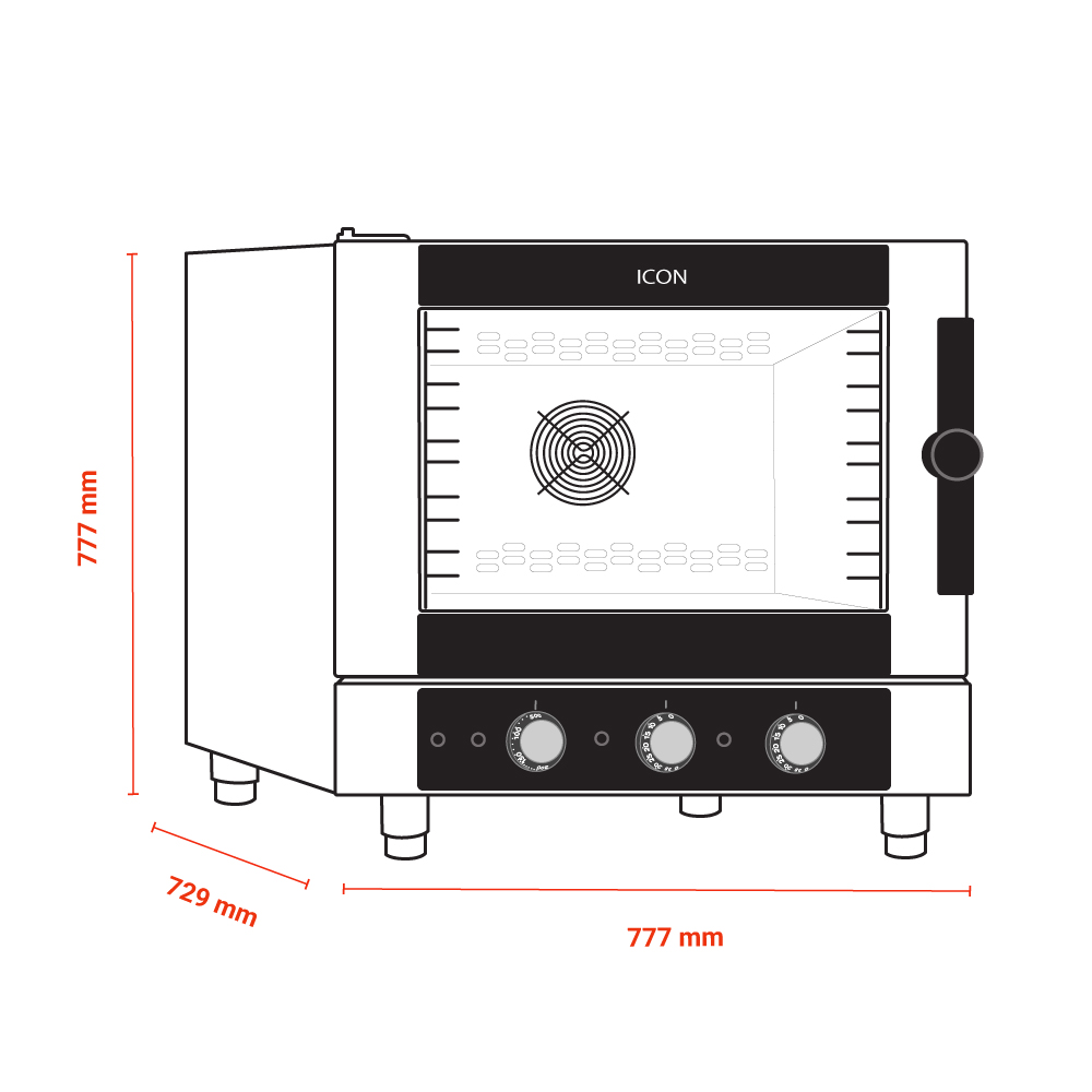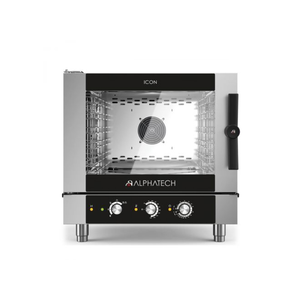 Φούρνος Icon 5 θέσεων (600x400mm ή GN 1/1) , με μηχανικό χεισριμό ,  Alphatech Ιταλίας. Οι φούρνοι Icon αποτελούν την ιδανική λύση για επιχειρισείς όπως cafe-bar , αναψυκτήρια , μικρά εστιατόρια ή εταιρίες. Οι μικρές τους διαστάσεις σε συνδυασμό με τις υψηλές προδιογραφές τους δίνουν στον χρήστη του φούρνου την δυνατότητα για γρήγορη και εξαιρετικής ποιότητας παρασκευής φαγητού.Κάθε πιάτο είναι ένα αριστούργημα από το μαγείρεμα στον ατμό , το τηγάνισμα και το ψησίμο στην σχάρα.